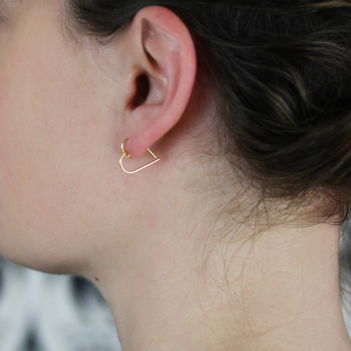 These earrings are 100% handmade in London from solid recycled silver and are heavily overlaid with 18ct gold. They are a deconstructed heart hoop design.