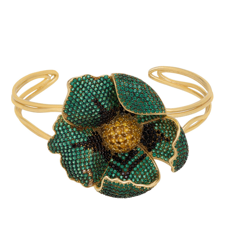 Poppy Bangle Cuff Bracelet Gold Emerald Green Cz