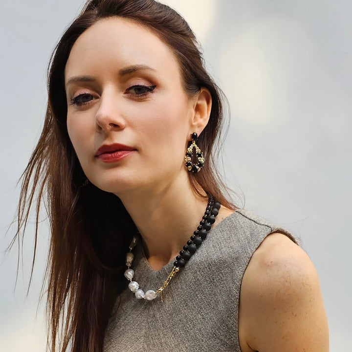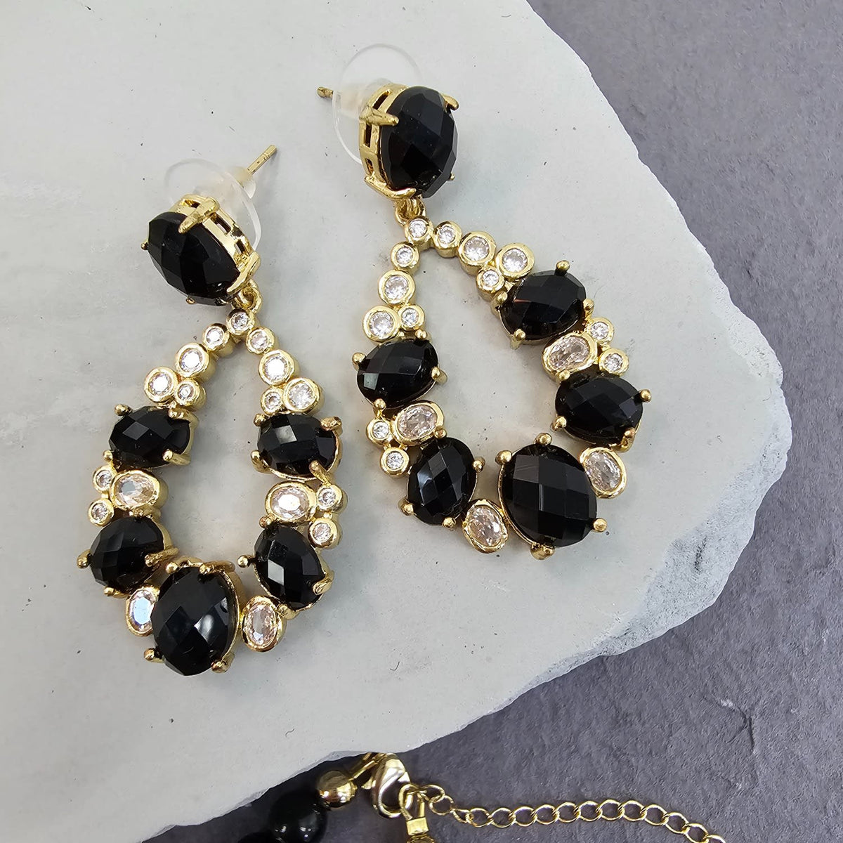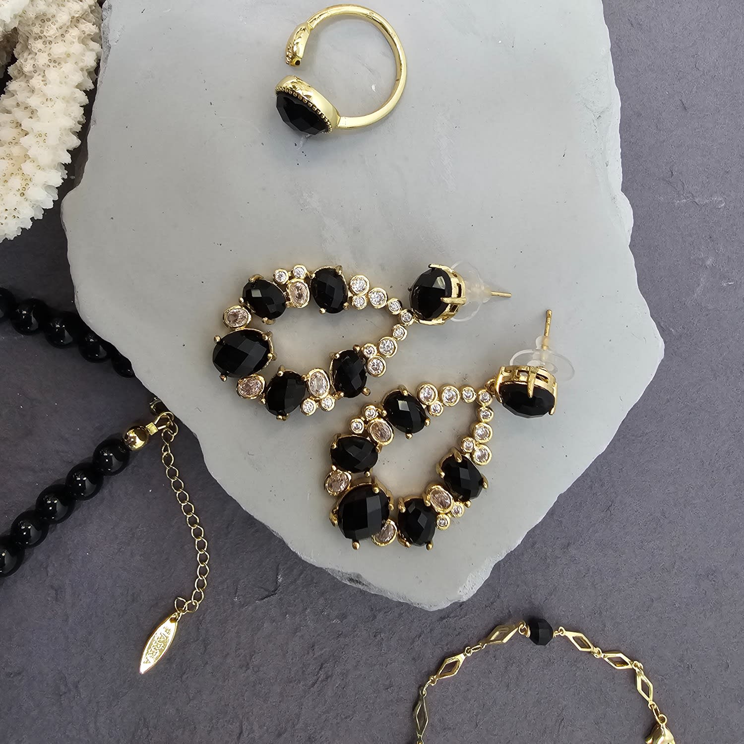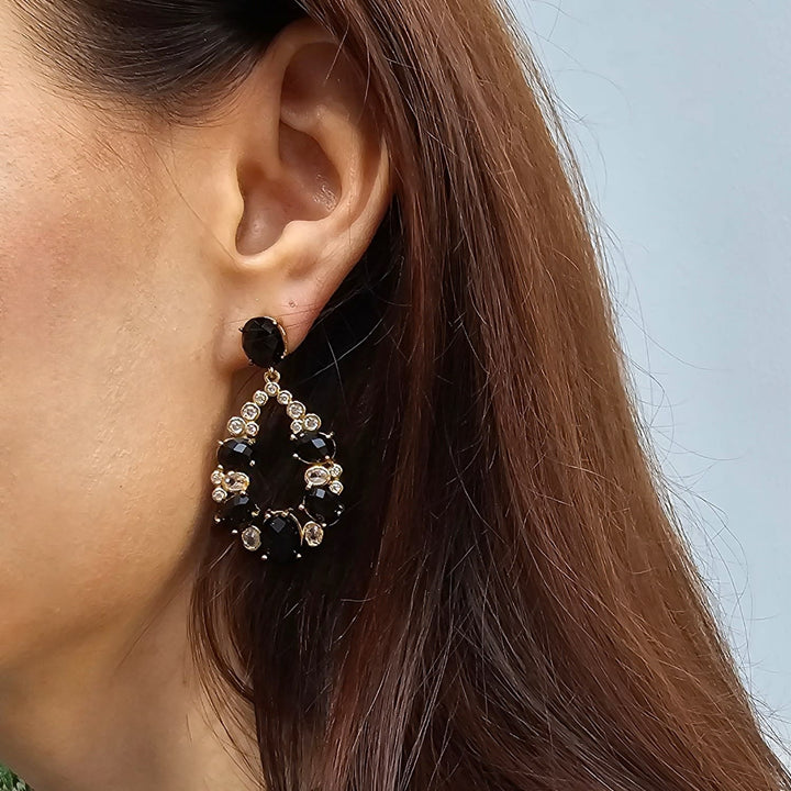 These Teardrop Shaped Black Obsidian Statement Earrings by Farra are a stunning accessory that blends elegance with a modern design. Crafted from high-quality black obsidian, their deep, glossy finish not only enhances visual appeal but also carries the ancient belief that the stone provides protection and grounding. These earrings are versatile enough to be paired with a variety of outfits, from a little black dress to a casual sweater and jeans, adding a touch of sophisticated drama to any look.