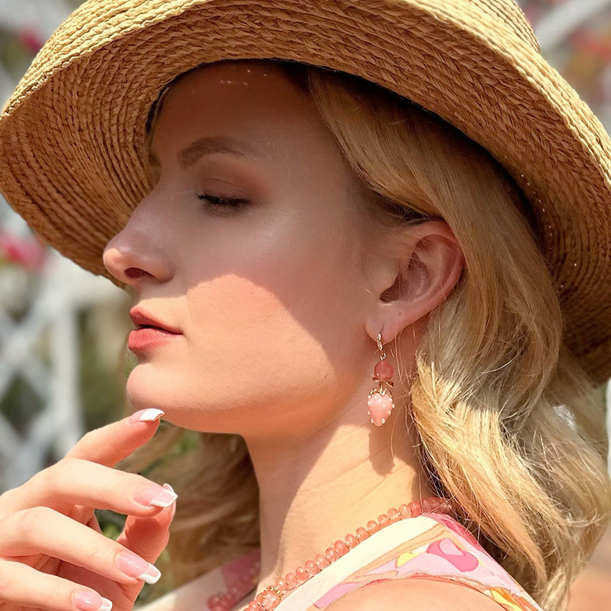 Watermelon Quartz With Strawberry Glass Dangle Earrings