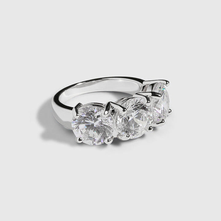 This ring is crafted from solid sterling silver and features three custom-cut, high-quality cubic zirconia crystals.