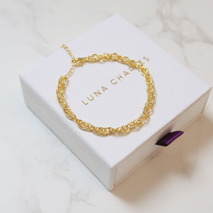 Back to basics with Monica this season! Add to your staple everyday jewellery collection with this simple yet stylish gold cable bracelet. Monica is great solo yet she also lends herself nicely to creating the ultimate arm stack when layered with other with other chains. Refresh your go to jewellery pieces today and treat yourself or a friend. Presented in a gorgeous box with gift wrapping available, making a perfect present for someone special.