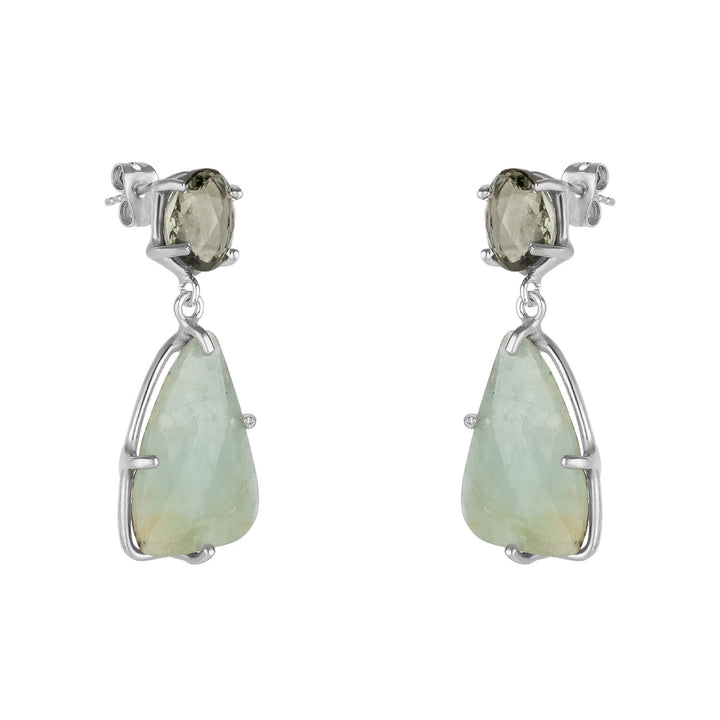 These earrings are crafted from silver and are set with a natural Eau de Nil gemstone.