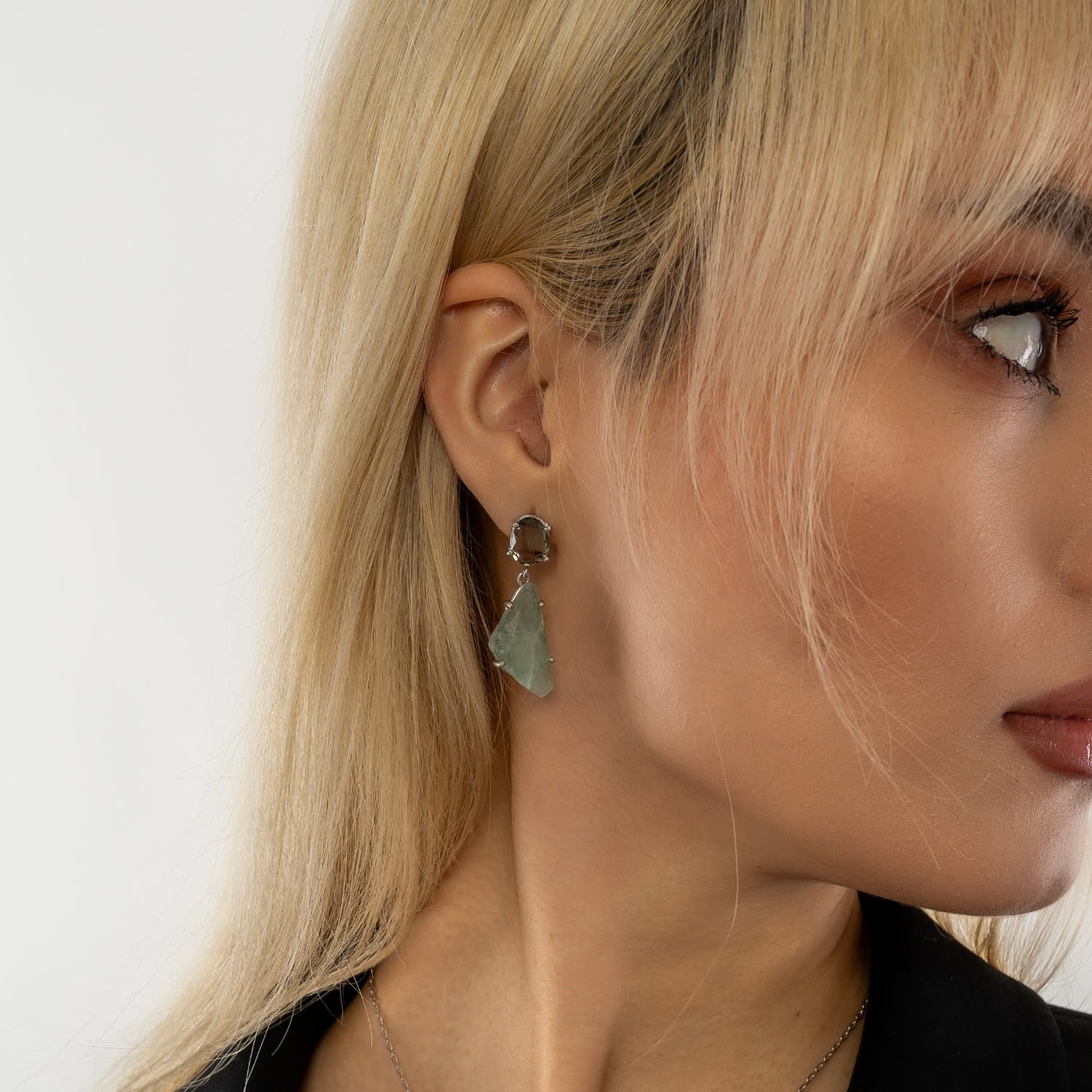These Drop Eau De Nil Gemstone Silver Earrings by Mejoma are a unique and stunning accessory. Each earring features a naturally unique gemstone, imperfectly perfect, which celebrates individuality. They are a beautiful and one-of-a-kind addition to your jewelry collection.