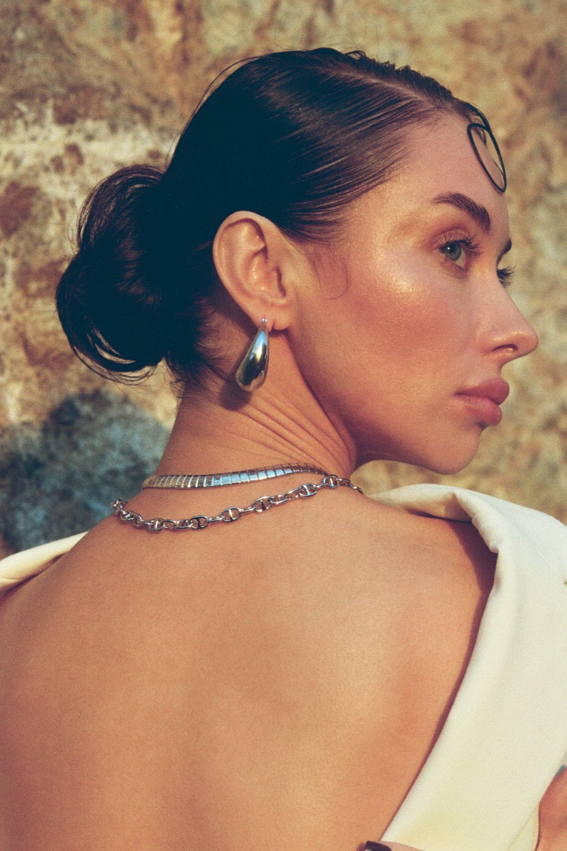 The Camila Herringbone Chain Necklace by Naiia is a classic and trendy staple. Crafted from 14K gold-filled material, this necklace is both water-resistant and hypoallergenic, making it perfect for everyday wear. The herringbone chain design is fashionable enough to dress up any outfit while remaining a timeless piece. It can be worn alone for a clean, classic look or layered with other necklaces for a more modern style.