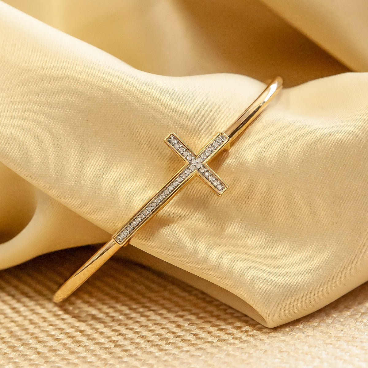 Vermeil Bruna Black Diamond Cross Bangle Bracelet
