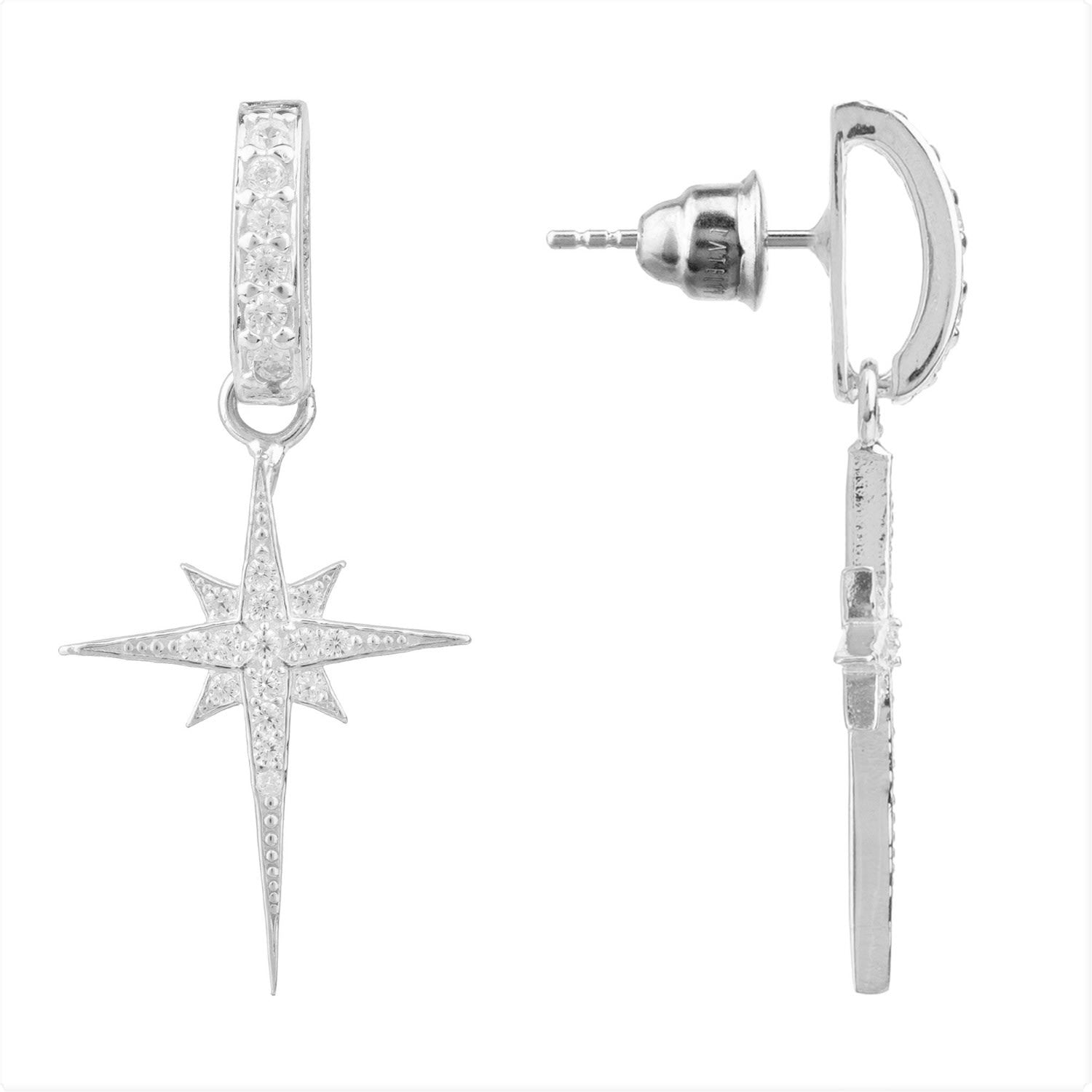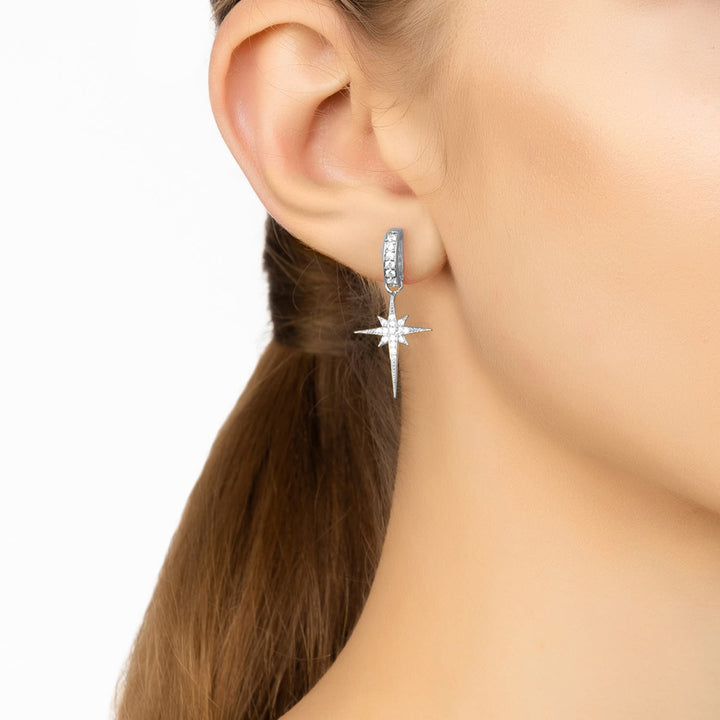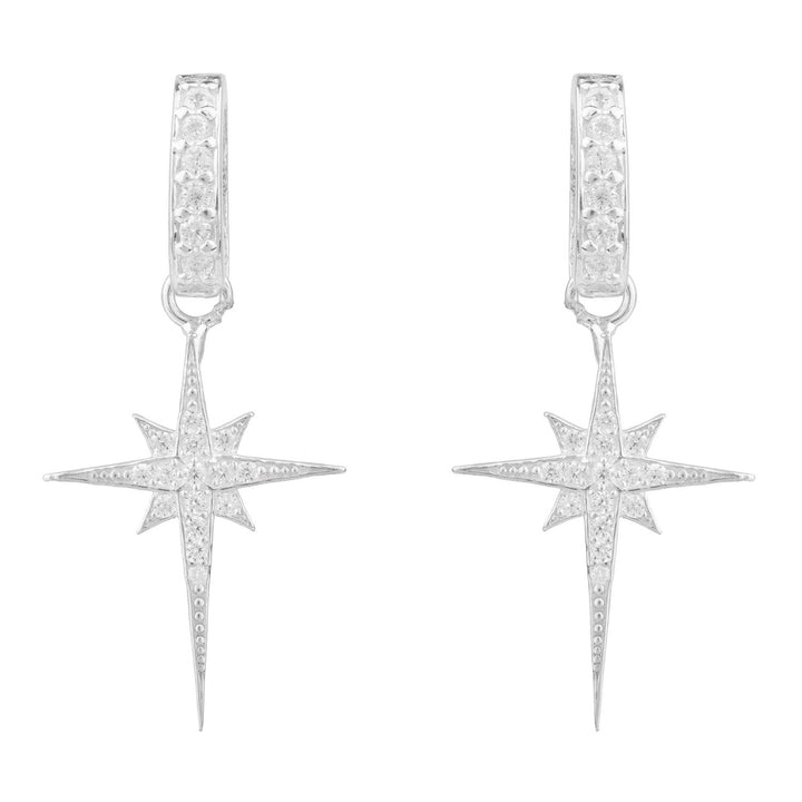 The North Star Burst Small Drop Earrings Silver by Latelita are a sparkling and delicate accessory. These small star burst earrings are adorned with white zirconia and a small star burst hangs from a stud-backed earring topper for movement. The North Star symbolizes a guiding light. They are made from 925 sterling silver and have handset micro pave AAA grade cubic zirconia.