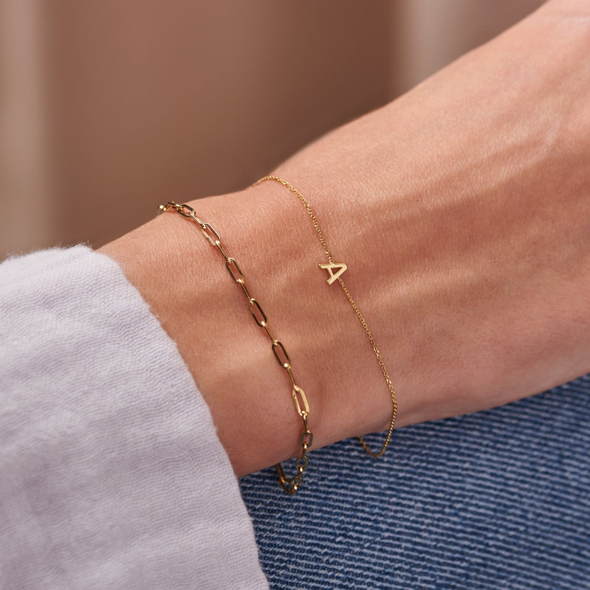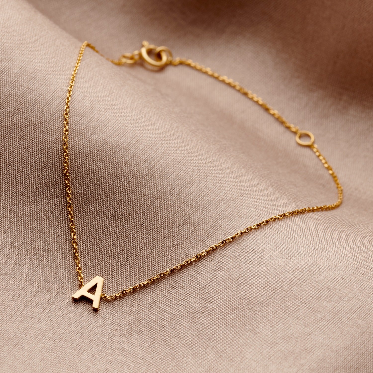 This gorgeous 9ct gold Initial Bracelet is the perfect gift for a loved one or a fantastic treat to yourself. Handmade in our workshop from solid 9ct yellow gold. This Gold Bracelet comes beautifully finished with a hanging initial letter charm of your choice.