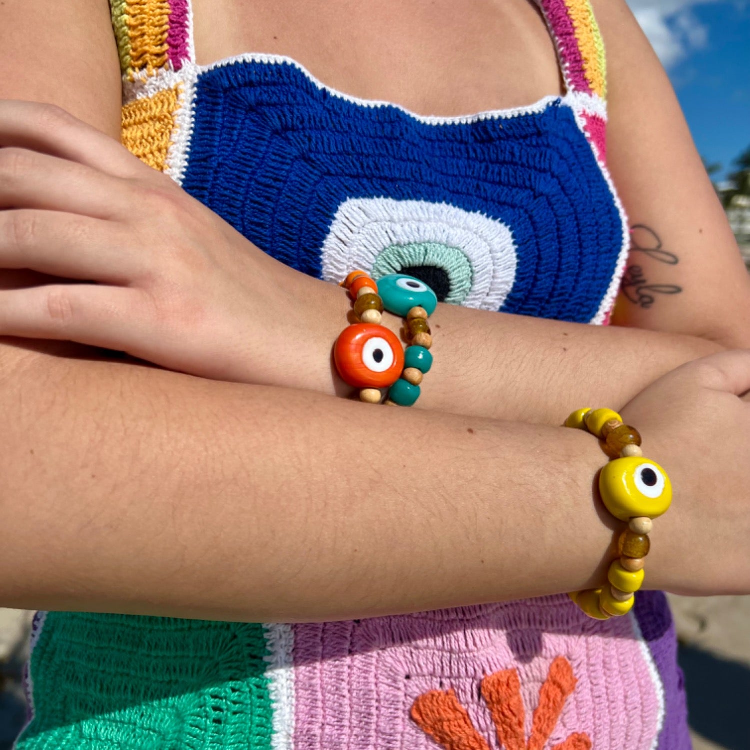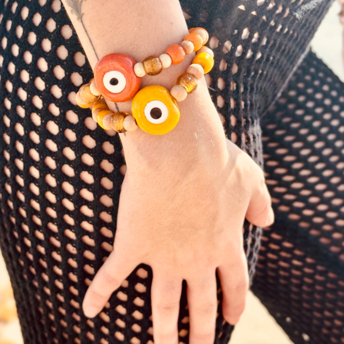 Introducing our captivating Wisdom Bracelets, each one with an Evil Eye and a fusion of vibrant Turkish beads meticulously hand-painted to perfection. Embark on a journey of self-discovery and empowerment as you adorn your wrist with our array of enchanting color variants, each bearing a name that resonates with the essence of inner wisdom and positive energy. Choose from an array of hues like 'peace,' 'balance,' 'luck,' 'protection,' 'joy,' 'wealth,' and 'love,' each one crafted to evoke a specific intention. Wear them solo for a subtle yet impactful statement, or stack them together to create a bold and personalized expression of your unique journey. Embrace the power of intention and adorn yourself with our bracelets, where every color tells a story of transformation and growth.