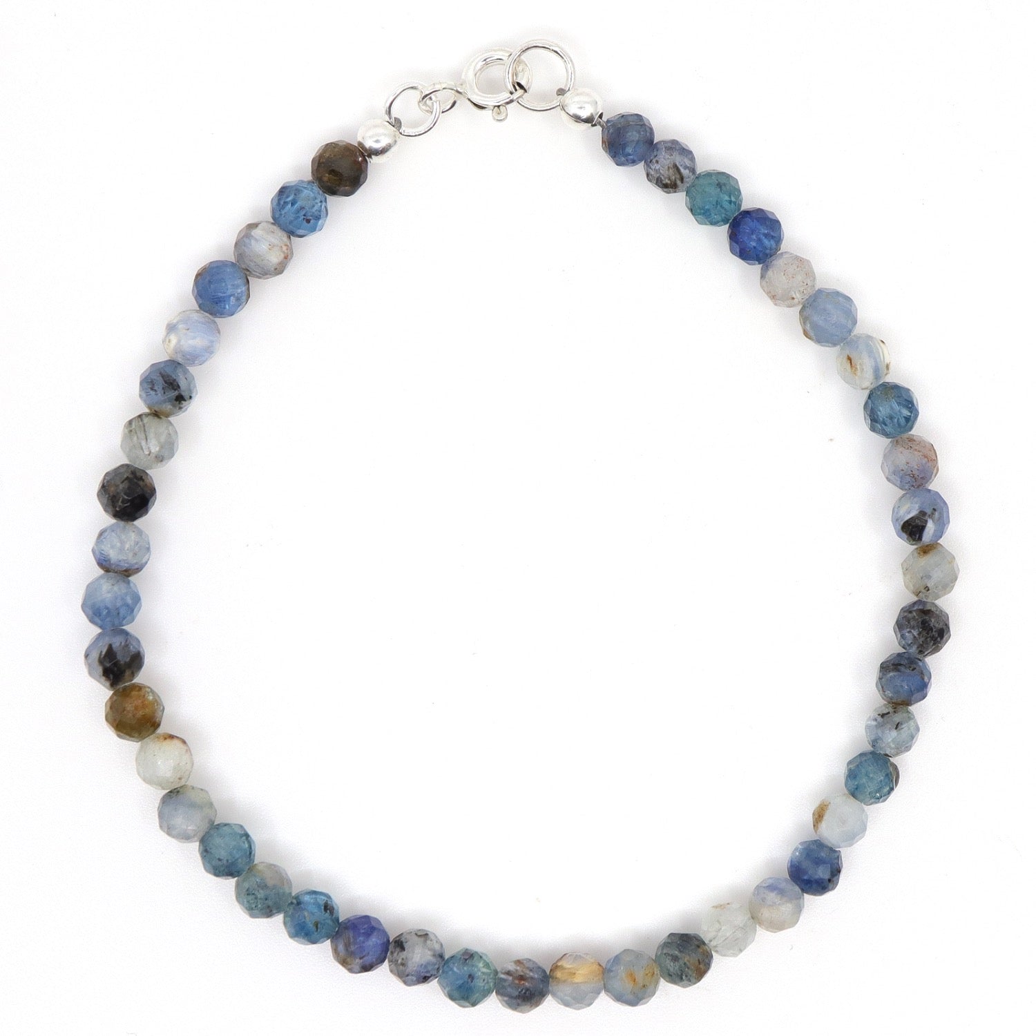 The understated charm of the 4mm dainty kyanite beads with soothing blue tones, brings a touch of effortless style to your ensemble The details - Strung on satin silver wire and a spring clasp closure hook Gemstones in their natural form are imperfect as such, no two stones are alike which add to the character and the beauty of the stone. One-of-a-kind. Made in Canada.