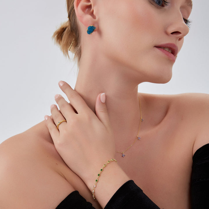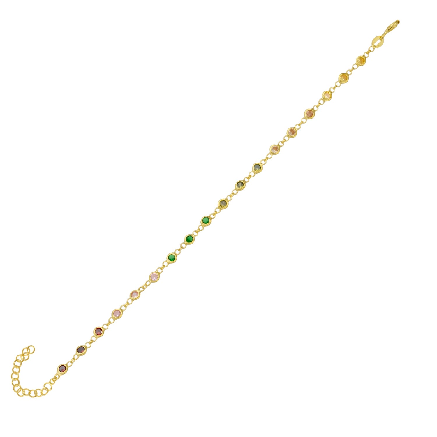 Colourful Rainbow Jewelled Sterling Silver Chain Bracelet