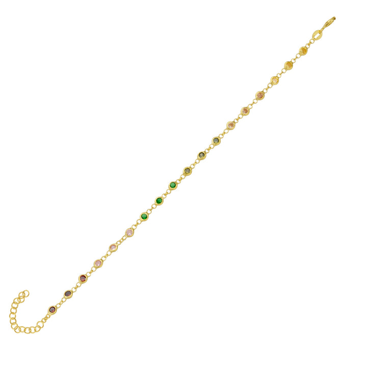 Be the rainbow in the storm with this Colourful Rainbow Jewelled Sterling Silver Chain Bracelet! Strut your style with an explosion of color and shine that'll have everyone in awe. Add a sweet and sassy pop to your wardrobe with this one-of-a-kind piece!