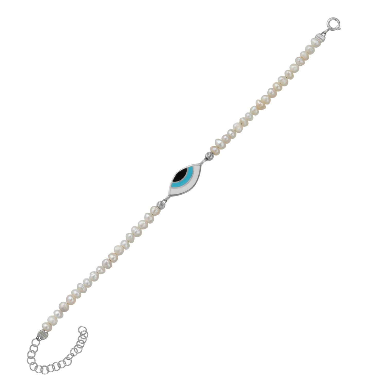 Achieve a timeless classic style with the Pearl Eye Sterling Silver Bracelet. Crafted from sterling silver, this bracelet features a signature pearl eyelet for a touch of elegant sophistication. Indulge in luxury with this piece that never goes out of fashion.