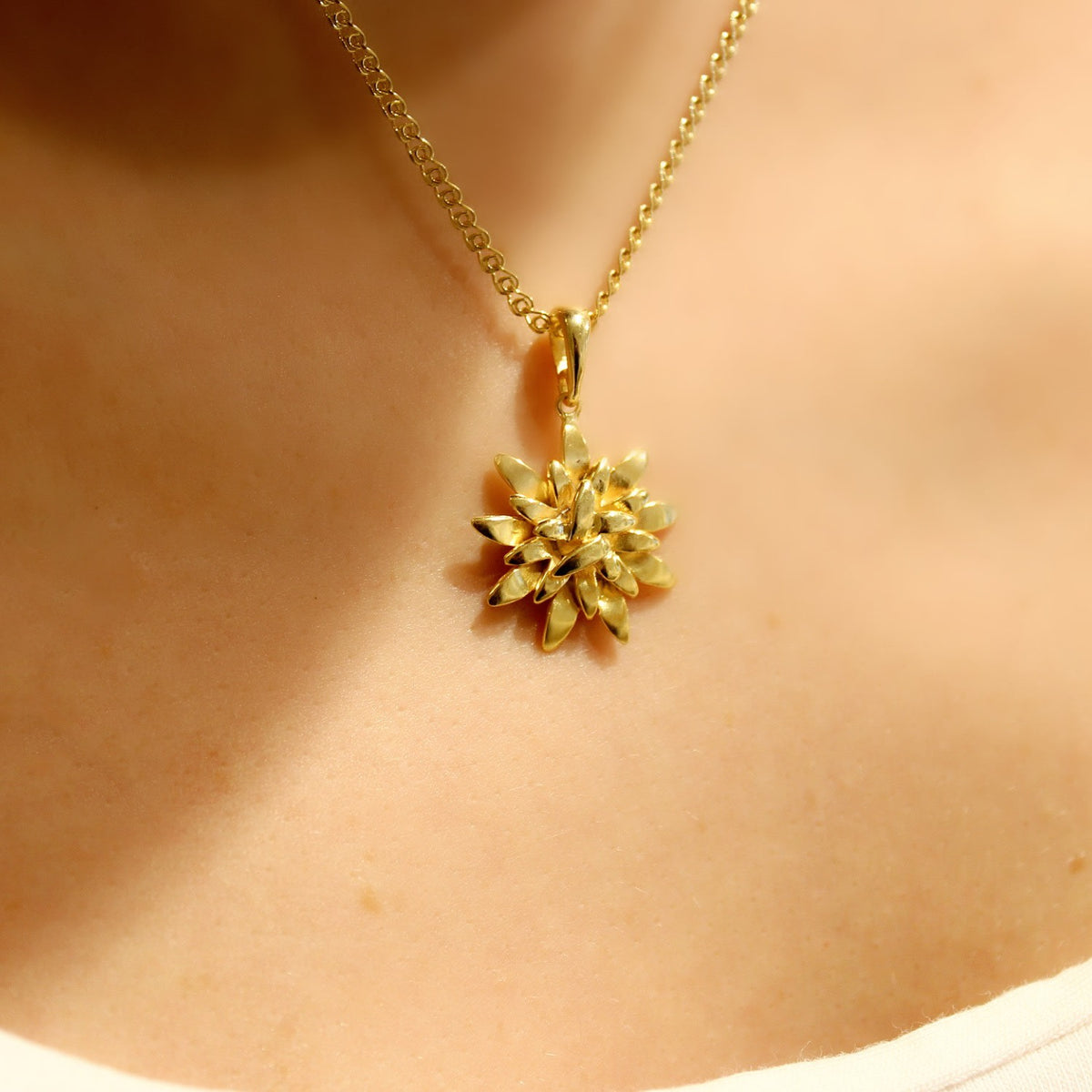 Sterling silver with gold plating. Handmade in Turkey with minimalist floral pendant design.