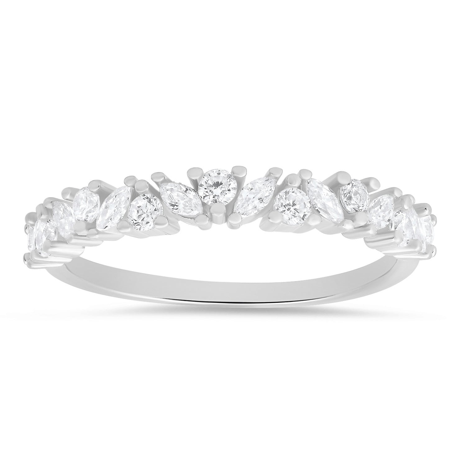 Petite Multi Cut Cz Band Ring In Sterling Silver