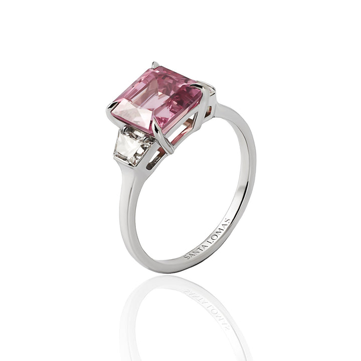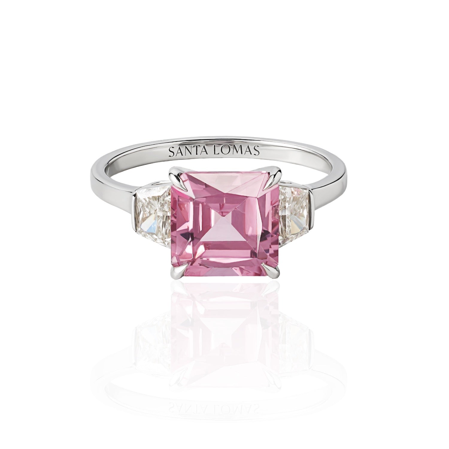 Neon Pink Spinel And Natural Diamonds Platinum Ring