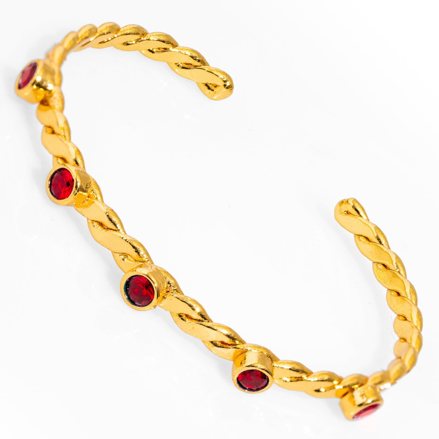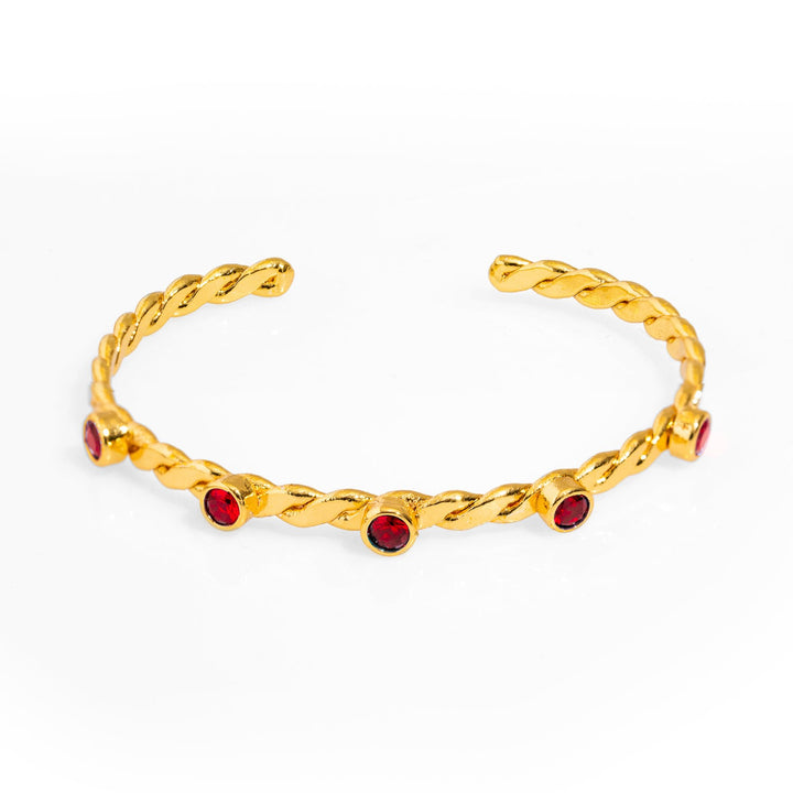 Twisted Ruby & Gold Dainty Cuff Bracelet - Ruby