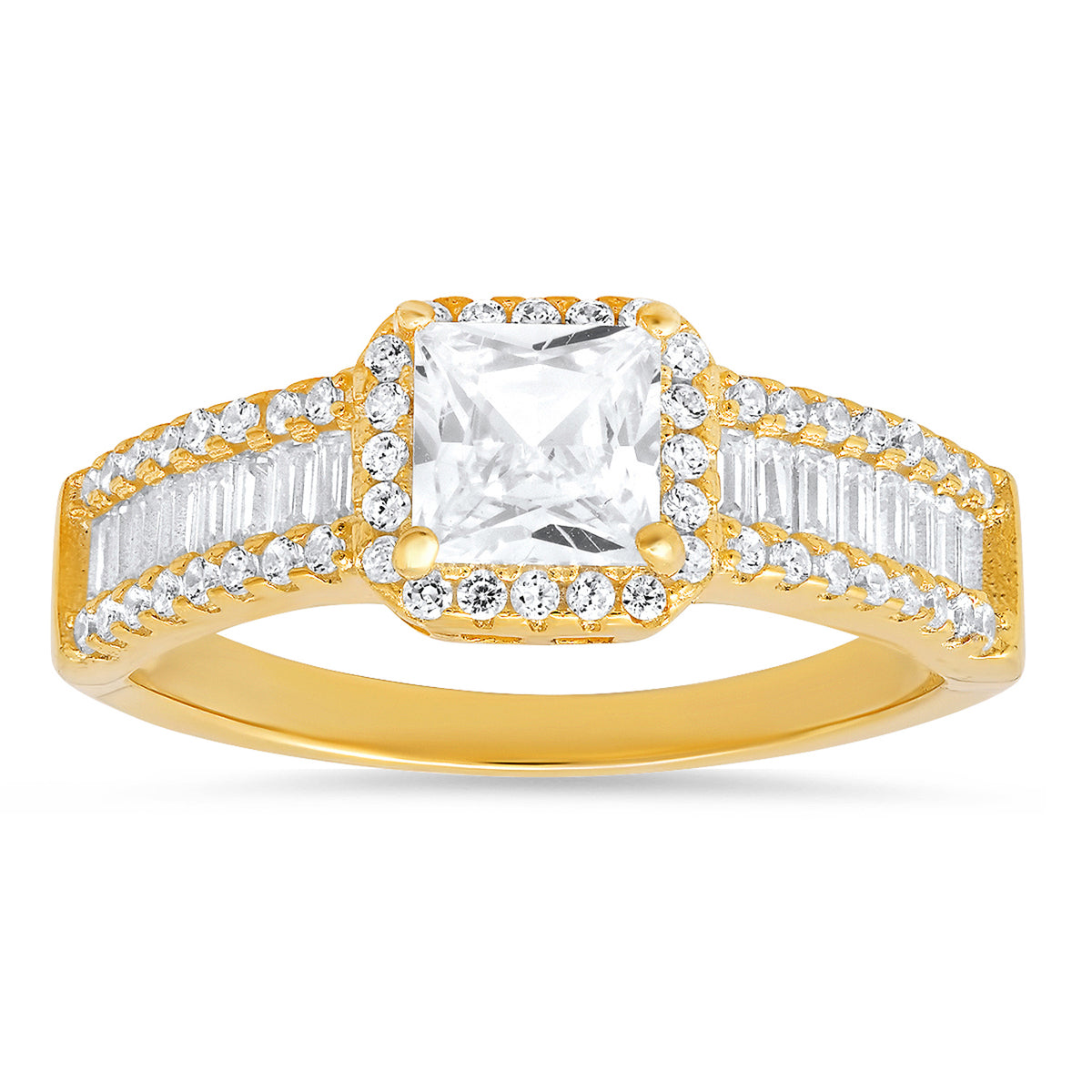 Introducing our exquisite Sterling Silver Princess & Baguette-Cut Diamond CZ Halo Ring, a true statement of sophistication and elegance. Crafted with precision from high-quality sterling silver, this ring showcases a dazzling princess-cut center stone adorned with an array of round and baguette-cut Cubic Zirconia Stones. The brilliant sparkle and intricate detailing make it a captivating piece that commands attention. Whether worn for special occasions or as an everyday accessory, this ring is sure to elevate any outfit with its undeniable charm and allure. Make a stunning statement of style and grace with our Princess & Baguette-Cut Diamond CZ Halo Ring.