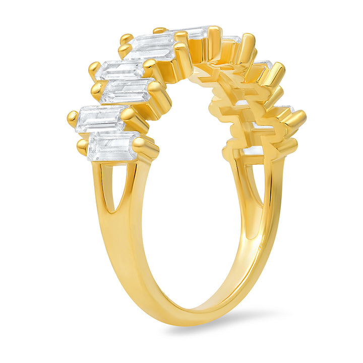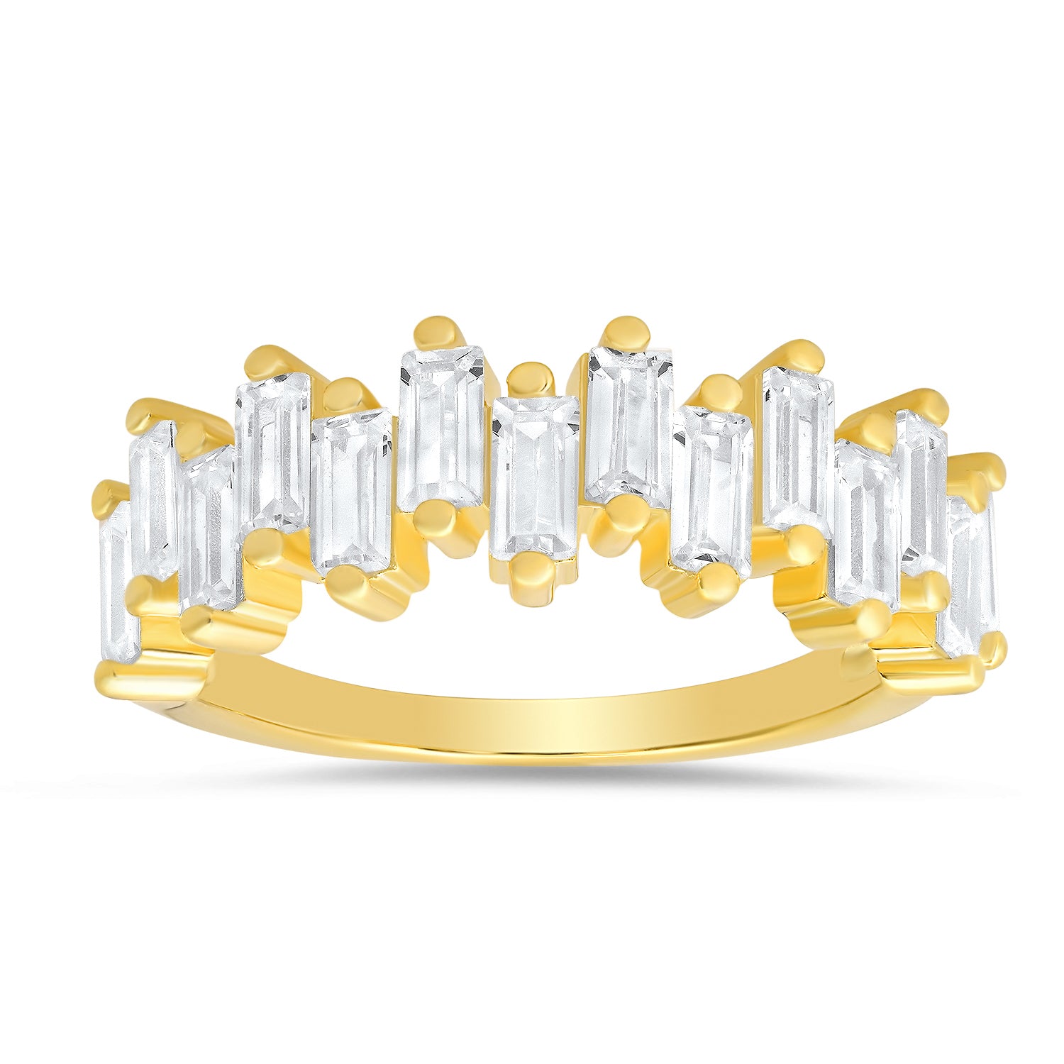 Introducing our Sterling Silver Abstract Baguette-Cut Diamond CZ Ring, a unique and modern piece that exudes sophistication. Crafted from high-quality sterling silver, this stunning ring features an abstract design adorned with sparkling baguette-cut diamond Cubic Zirconia Stones. The sleek and contemporary silhouette adds a touch of elegance to any ensemble, making it perfect for both casual and formal occasions. Whether worn alone as a statement piece or stacked with other rings for a chic layered look, this versatile ring is sure to turn heads and spark conversation.