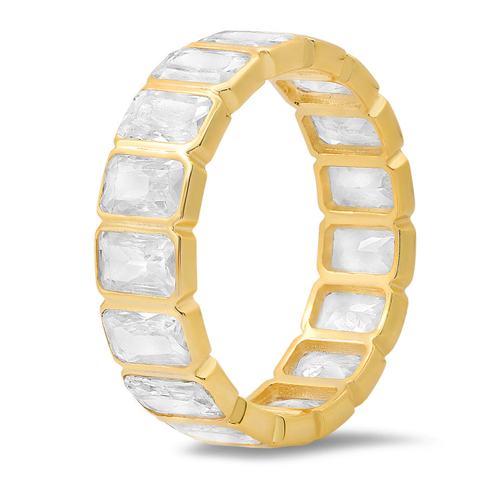 Gold Bezel Set Emerald Cut Cz Eternity Band Ring