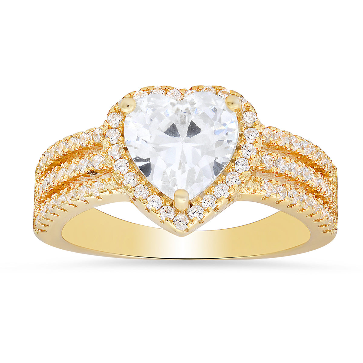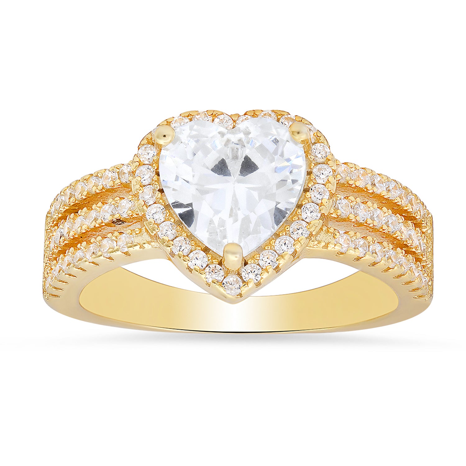 Real 14k Gold Over Silver- Stamped "925" for authenticity, Cubic Zirconia Stones 8mm Heart-cut Center Stone, Carat Weight 2.13 CTW