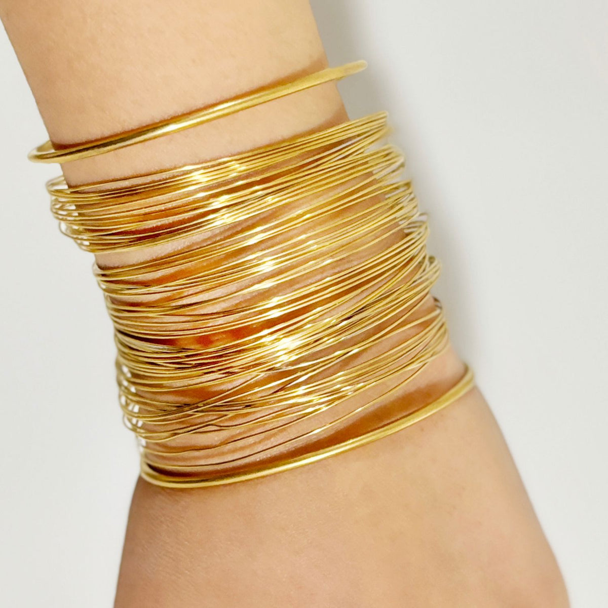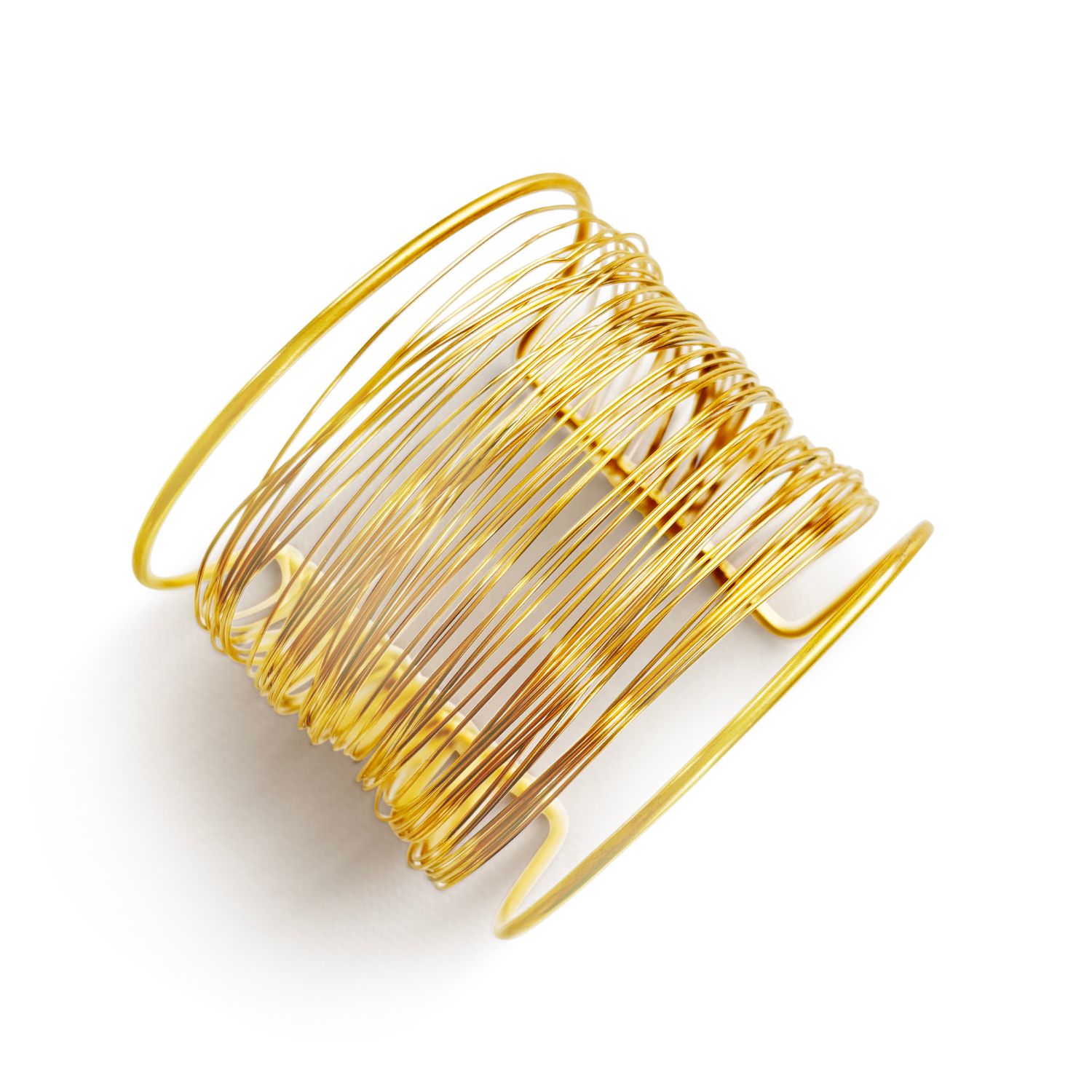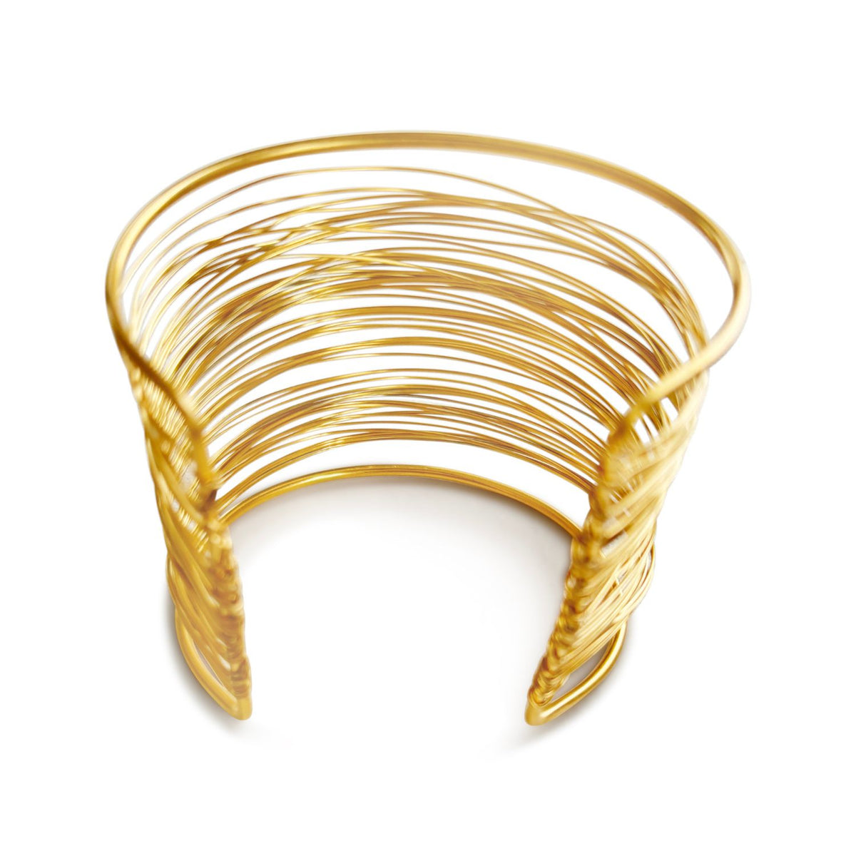 Crafted from gold-plated metal with polished finish. Cuff silhouette.