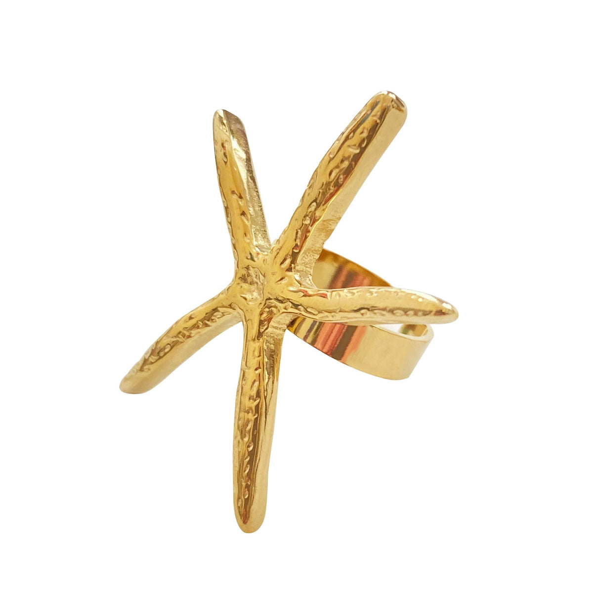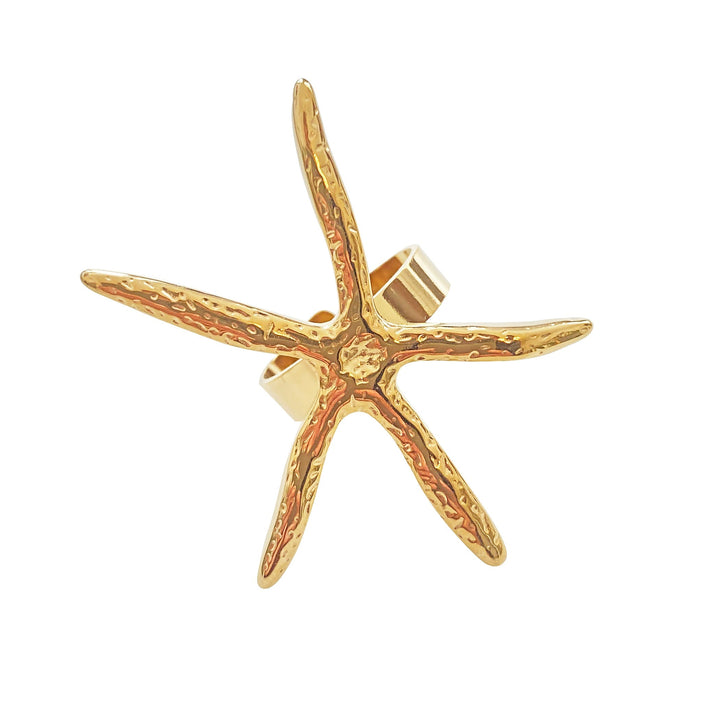 Stainless steel starfish ring. Adjustable band. Waterproof and tarnish-resistant. Handmade in Germany.