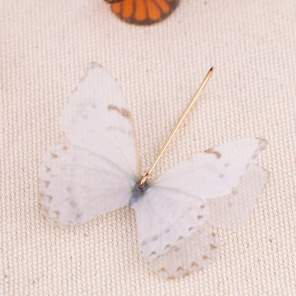 The White Bridal Silk Butterfly Gold Dangle Earrings by Oanasavu.creations are a delicate and ethereal accessory. These handcrafted earrings feature pure silk butterflies with a soft, translucent glow. The 14K gold-filled earwires are hand-shaped to create an elegant, minimalist silhouette. They are extremely light and designed to move gently, bringing a bit of magic to any moment.