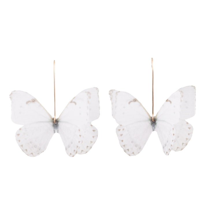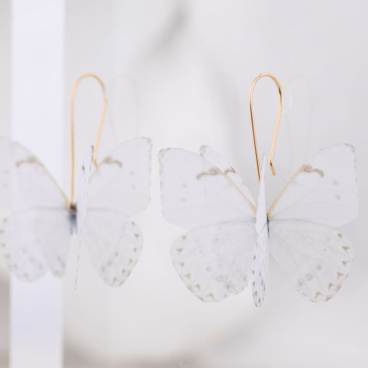 White Bridal Silk Butterfly Gold Dangle Earrings
