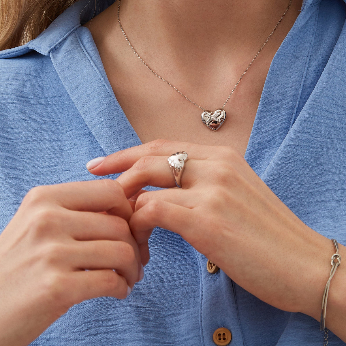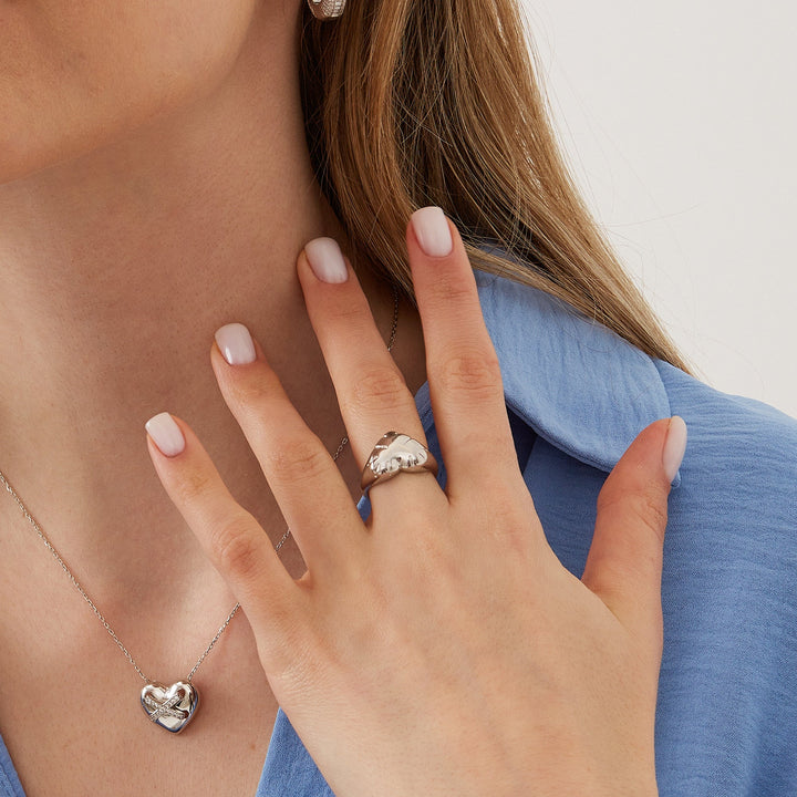 Be fashion-forward and bold with our trendy yet unique Chunky Love Heart Signet Ring, sure to make you stand out in the crowd. Cast in a 925 recycled sterling silver, it showcases a geometry-inspired three-dimension puffed heart with a glossy and sleek texture. It is highly flexible that sits perfectly on your versatile fingers to your desired size. This luxurious ring comes in lustrous yet lush gold, rose-gold, and silver tones- choose your favorite color to complement your fashionista style. Perfect to wear alone or stacked- this romantic ring is the ultimate addition to your treasured jewelry wardrobe. Moreover, surprise your loved ones on special occasions like Valentine’s day, Thanksgiving, Anniversary, Wedding day, Birthday, Christmas, etc.