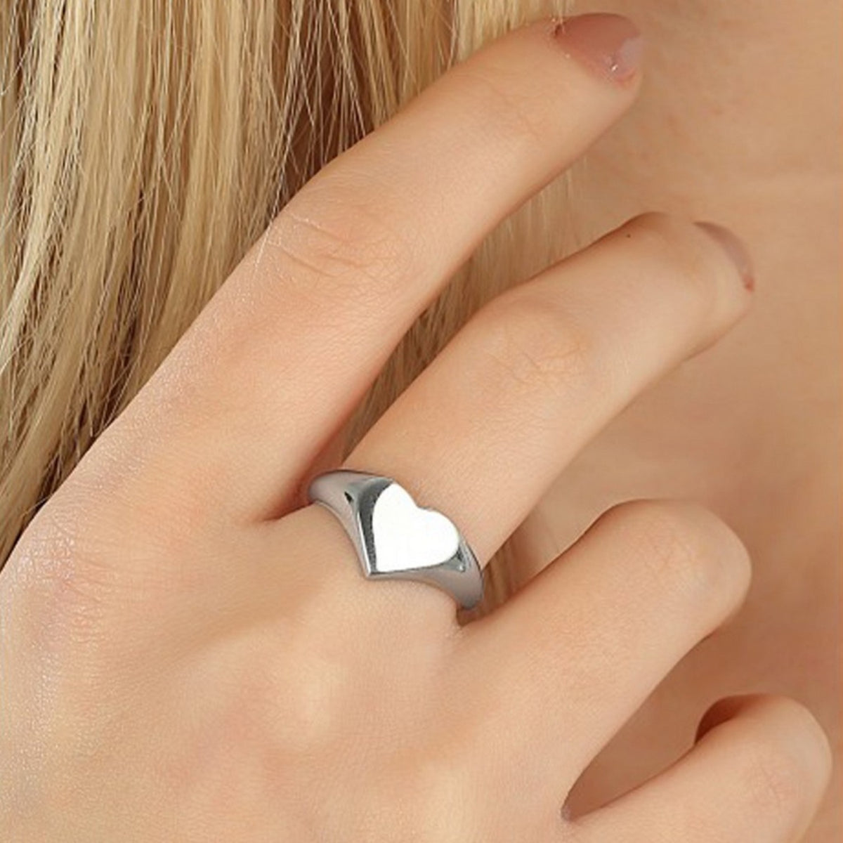 Love is in the air, just like this Sterling Silver Heart Love Signet Ring that gives you romantic yet lovely vibes. Cast in a recycled 925 sterling silver metal, it showcases an exquisite heart at the center with spectacular smoothness, stunning luster, and glossy surface to captivate your attention. This classic signet ring is highly adjustable that sits perfectly on delicate fingers. It comes in lavish yet luxe gold, rose-gold, and silver tones; you can choose your desired one for a statement look. Wear it alone or style it with other elegant rings for a stacking look. You can also present this delightful love ring to someone you love to show how much you adore and care.