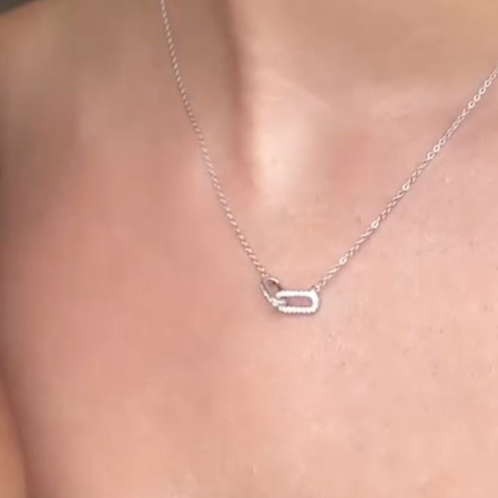 Silver Pave Cable Double Linked Pendant Necklace