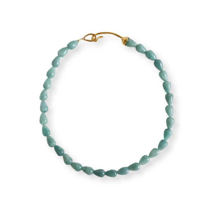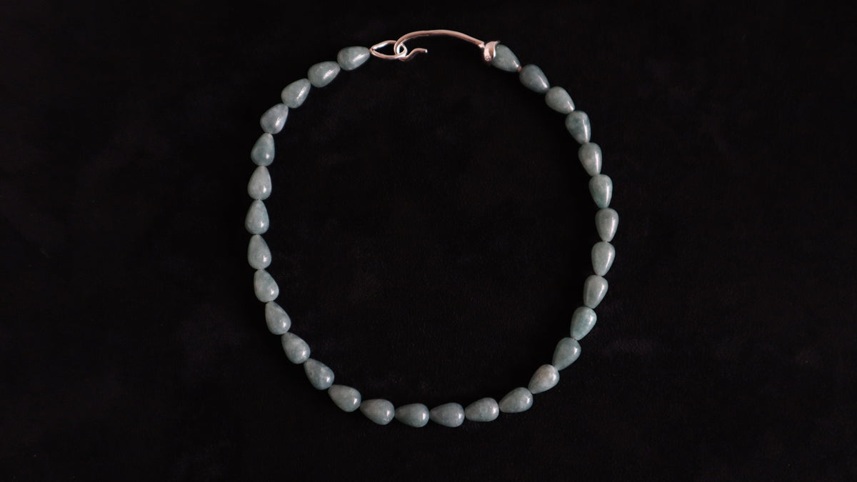 This Blue Quartz Necklace by Gem Island is a beautiful and serene accessory. It features handmade natural blue quartz beads delicately linked to a curved clasp. Blue quartz is said to bring self-confidence and balance, symbolizing peace, calm, and introspection. This necklace is a perfect gift for yourself or a loved one, adding a soft hue and a touch of elegance to any outfit.