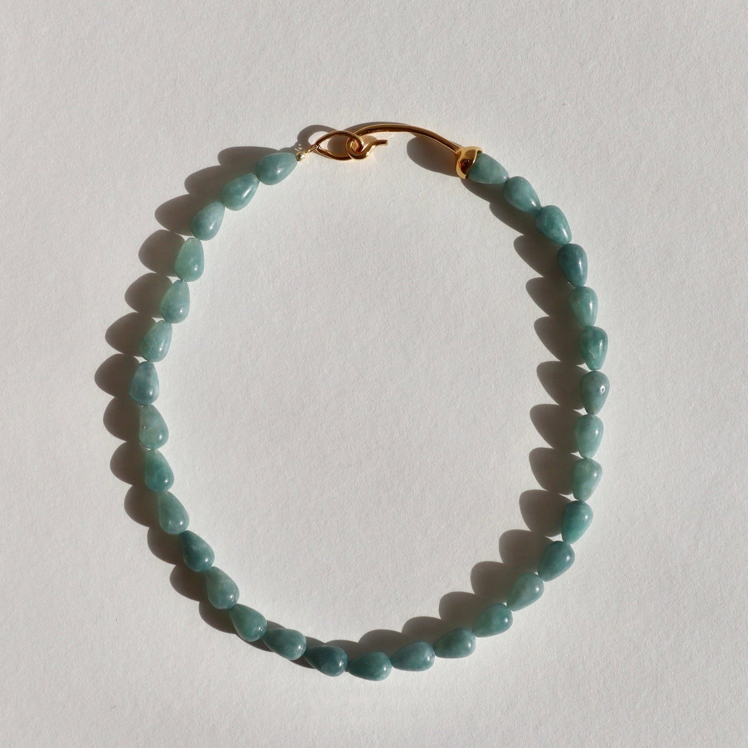 This necklace is handmade with natural blue quartz beads. The clasp is made from 24-carat gold-plated brass or 925 sterling silver.