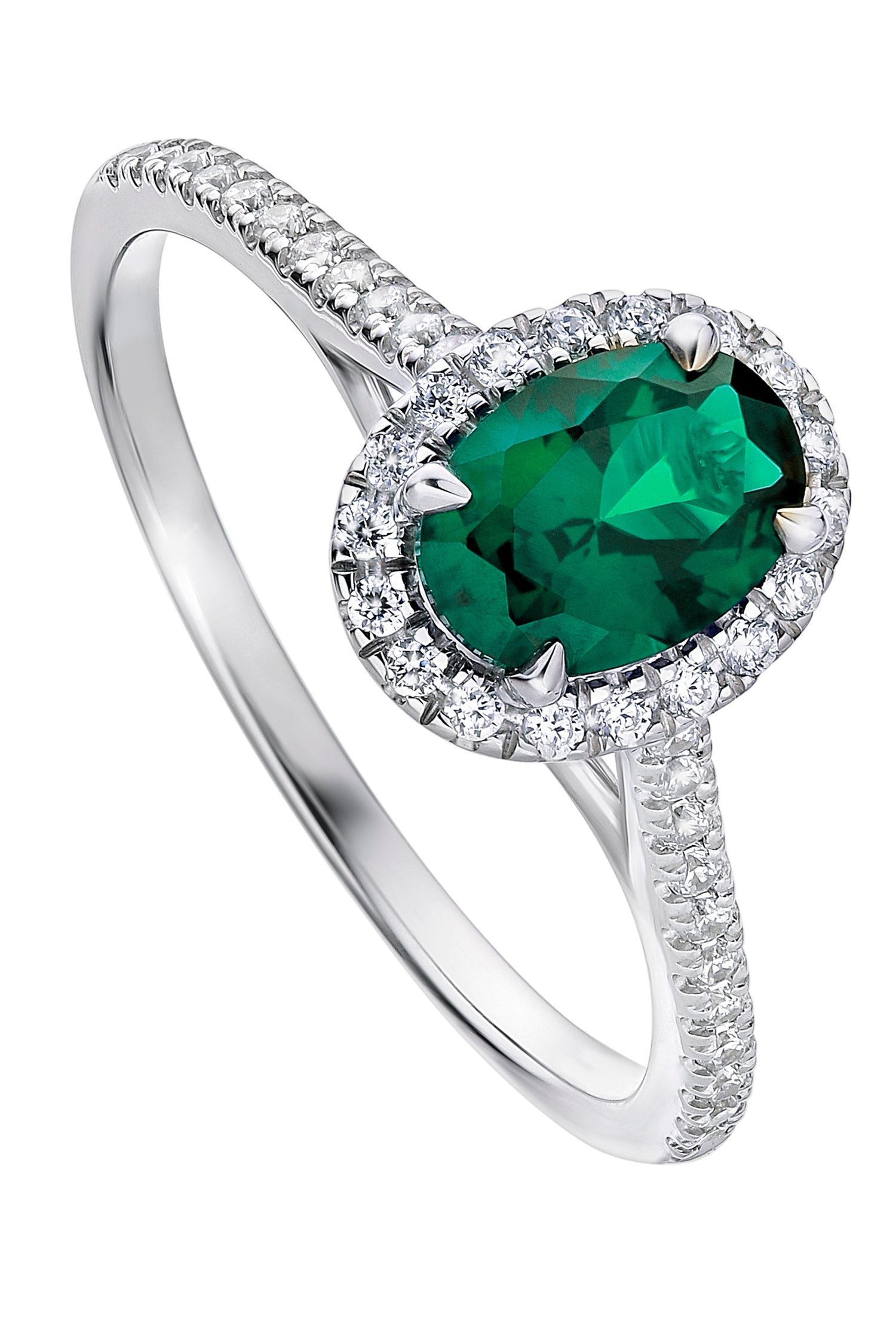 Rosalind White Gold Lab Grown Diamond Created Emerald Ring