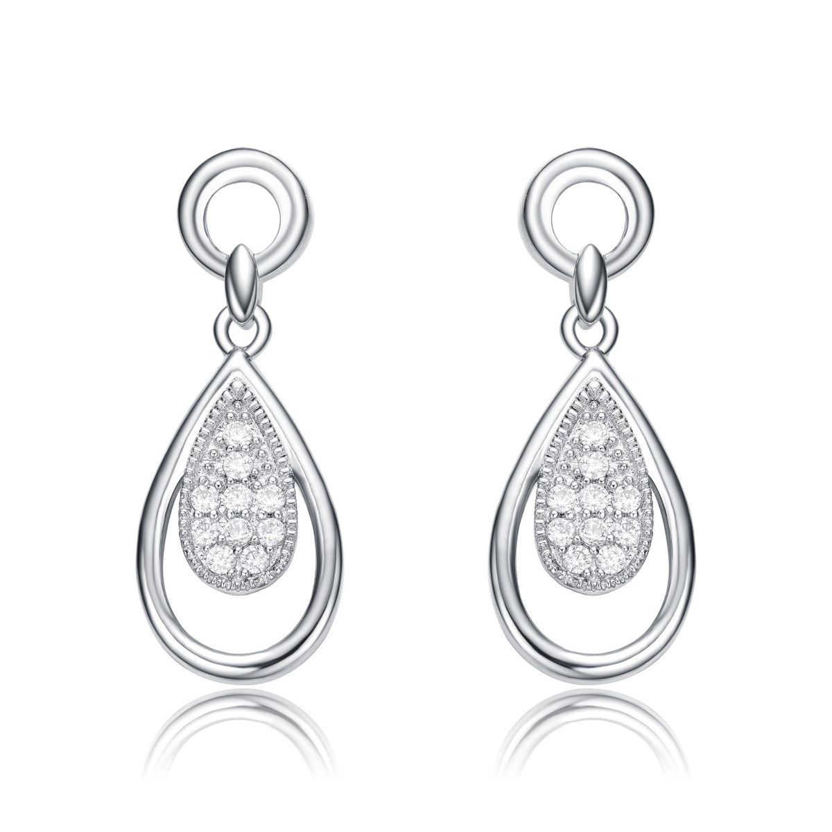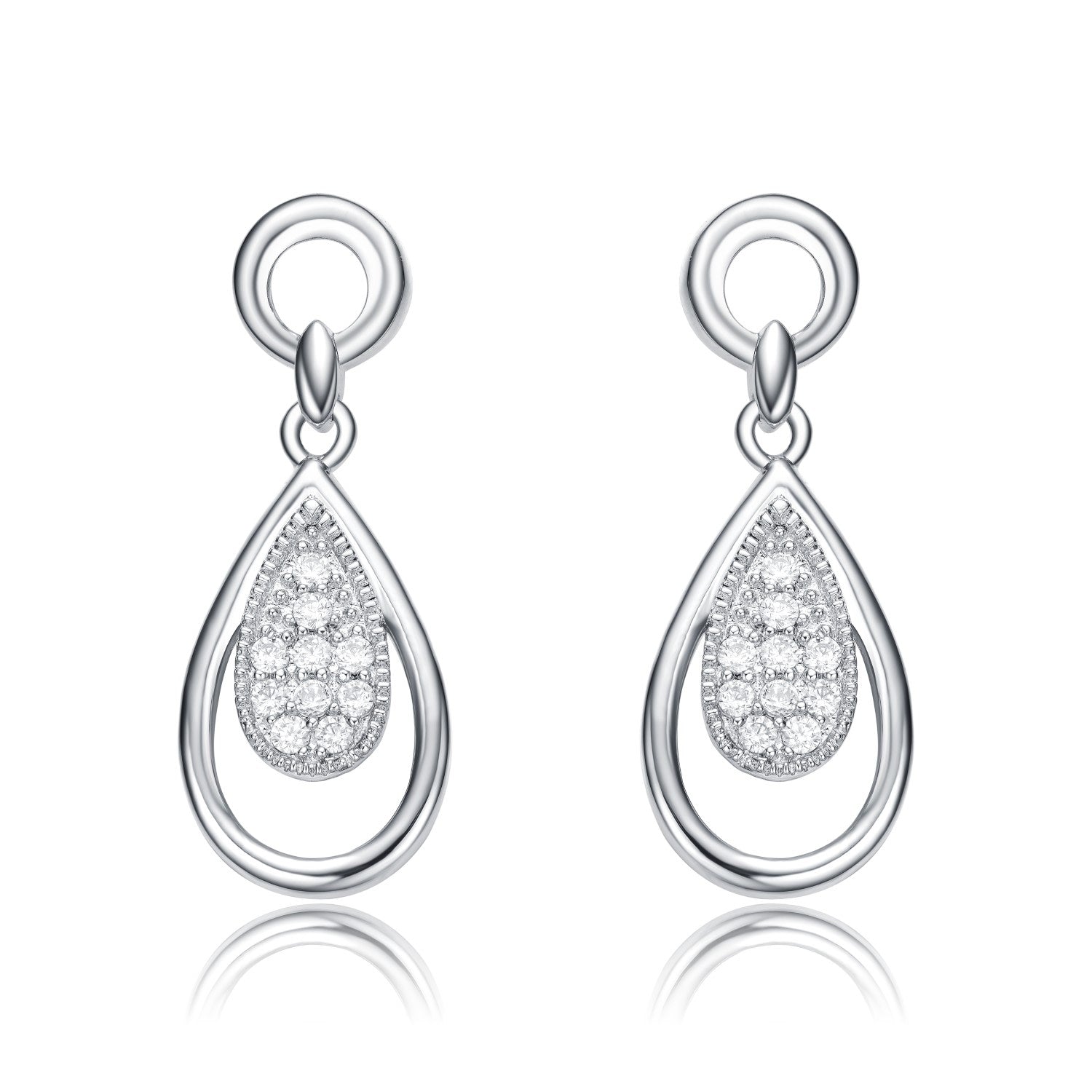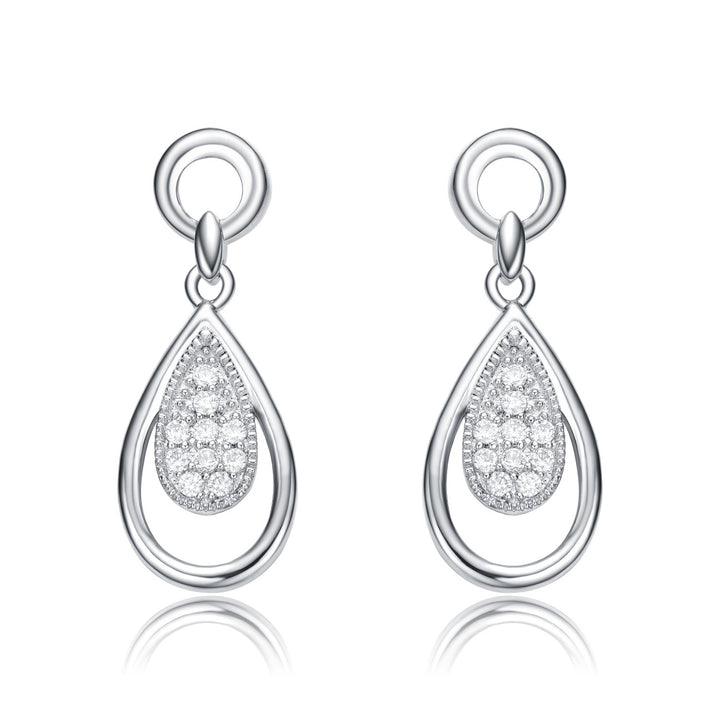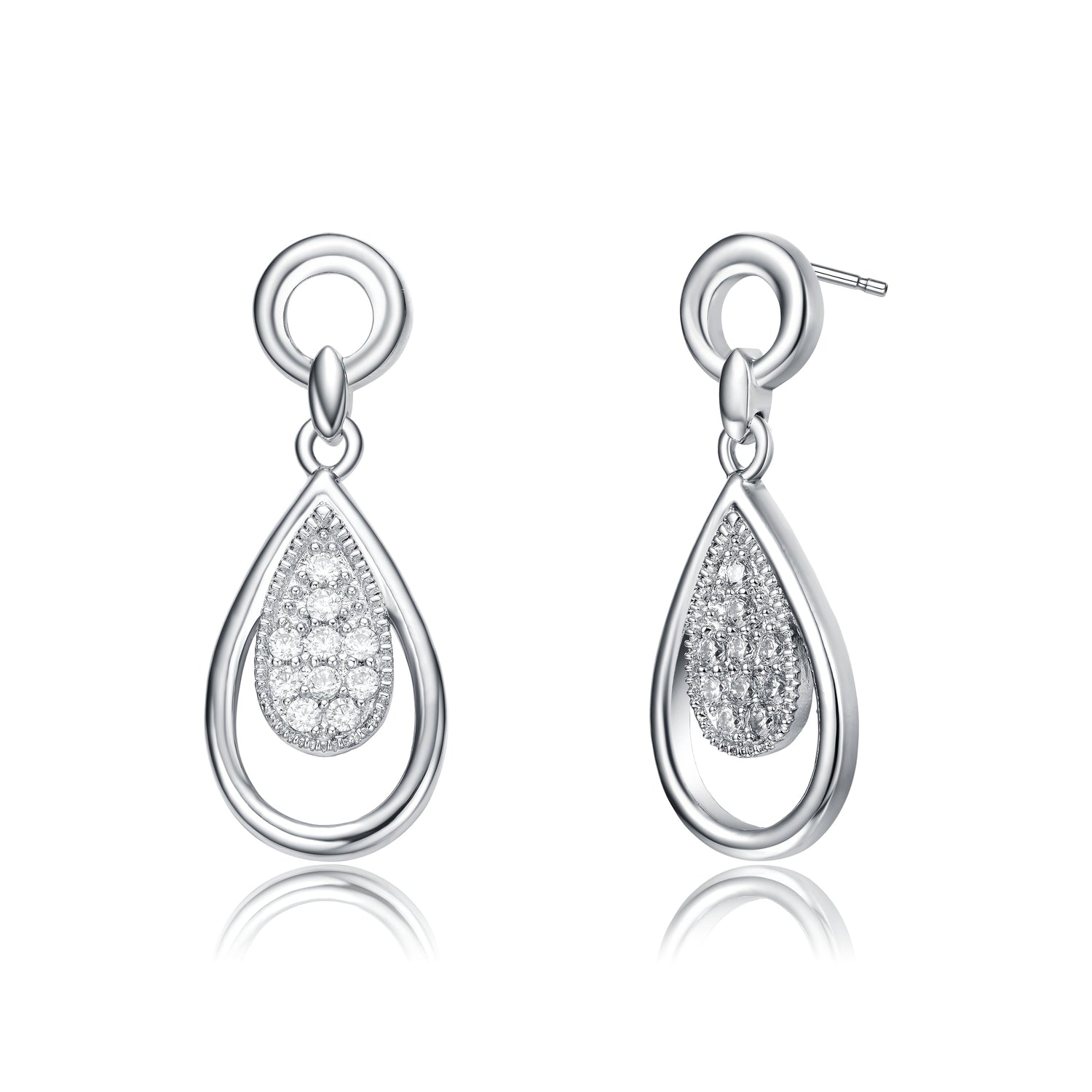 Stunning White Gold Plated With Clear Cubic Zirconia Pear Drop Earrings