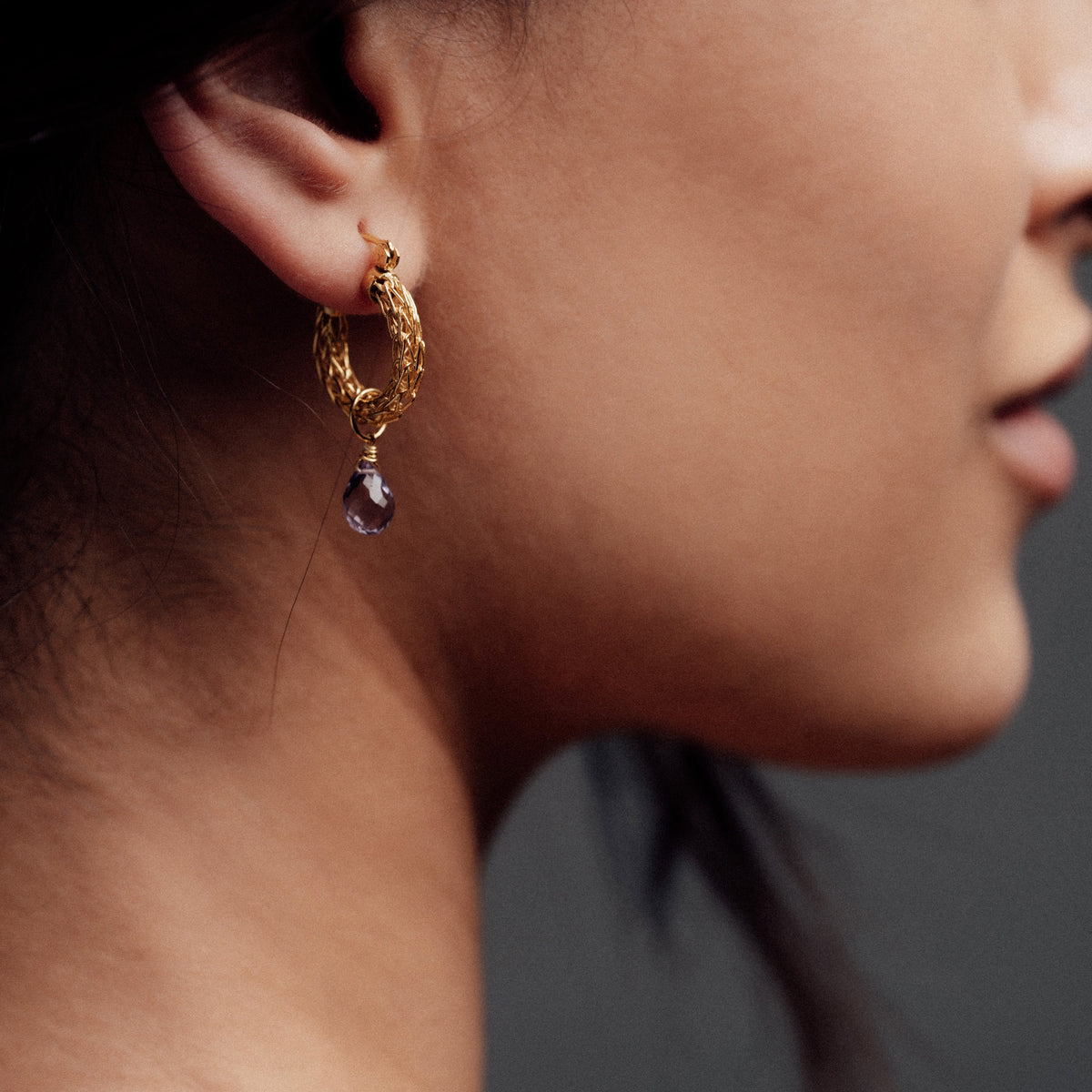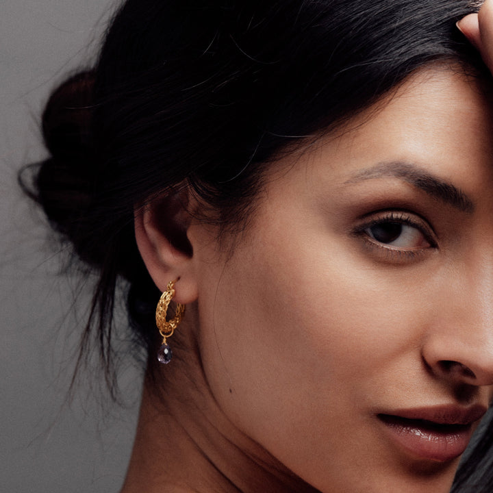 Sold as a single charm this Amethyst charm is part of Freya Rose's new Woven for Women collection, which features intricately hand crocheted pieces using a rare East Indonesian craft - a distinctive, now specialist technique only a handful of artisans are still able to do - these unique and divine amethyst charms are the perfect, timeless accessory to add a touch of sparkle to your jewellery collection. Complementing the statement, Freya Rose's woven earrings these luxurious charms can also be layered and playfully customised with other detachable gemstones from the collection: Peridot, Garnet, Citrine, Blue Topaz, Rose Quartz and Green Quartz.