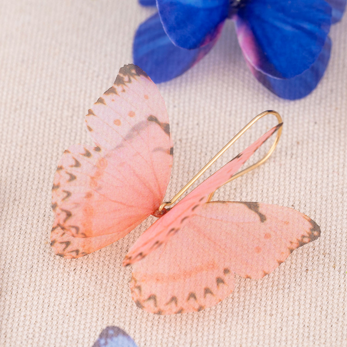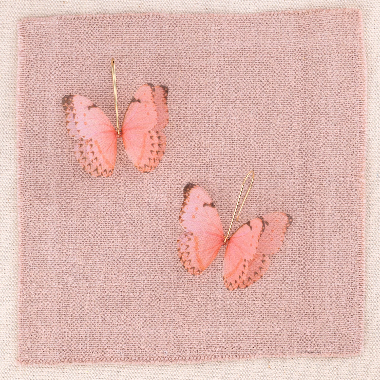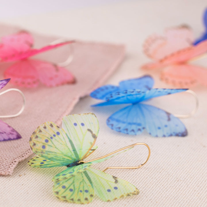 These Pink Silk Butterfly Dangle Drop Earrings Gold Earwires by Oanasavu.creations are a delicate and ethereal accessory. Handcrafted with pure silk butterflies printed in-house, they have a soft, translucent glow. The 14K gold-filled earwires are hand-shaped into an elegant silhouette that lets the butterflies be the centerpiece. These earrings are extremely light and designed to move gently with you, adding a touch of whimsy and magic to every moment.