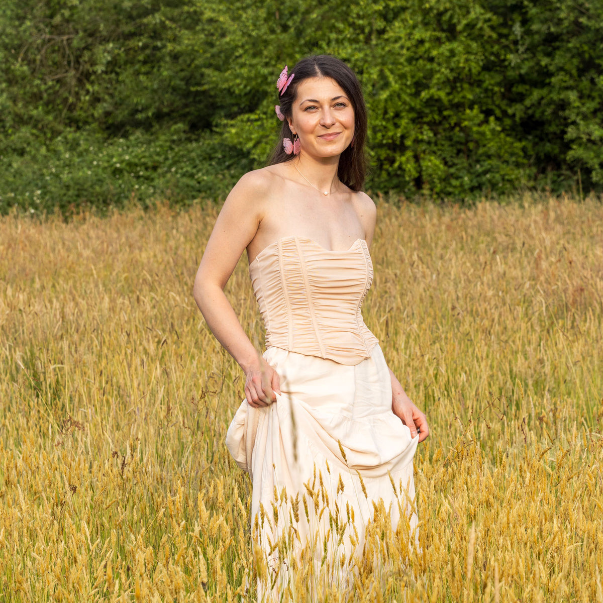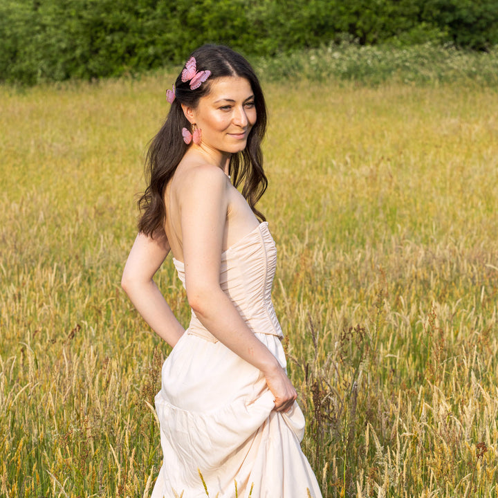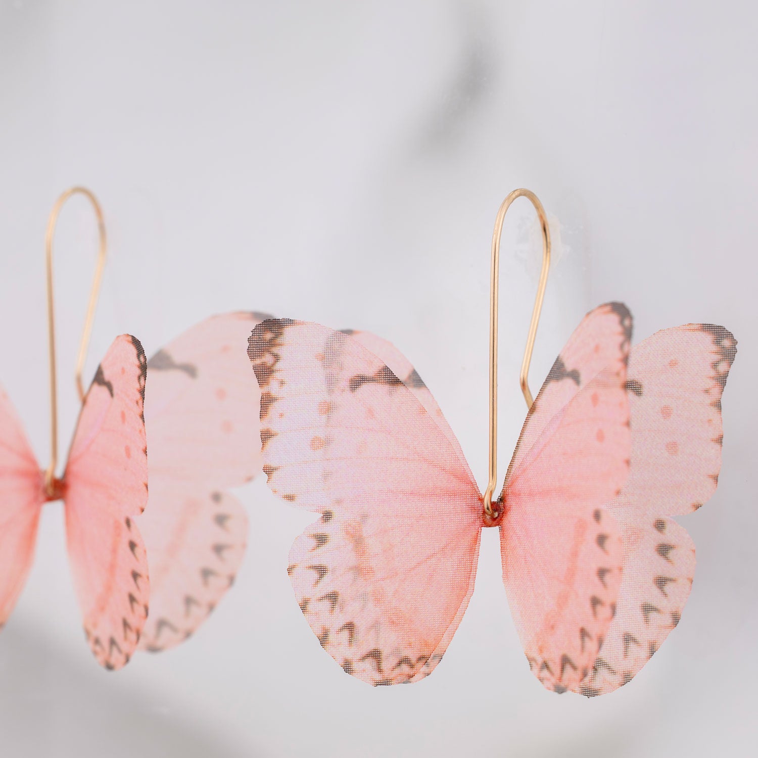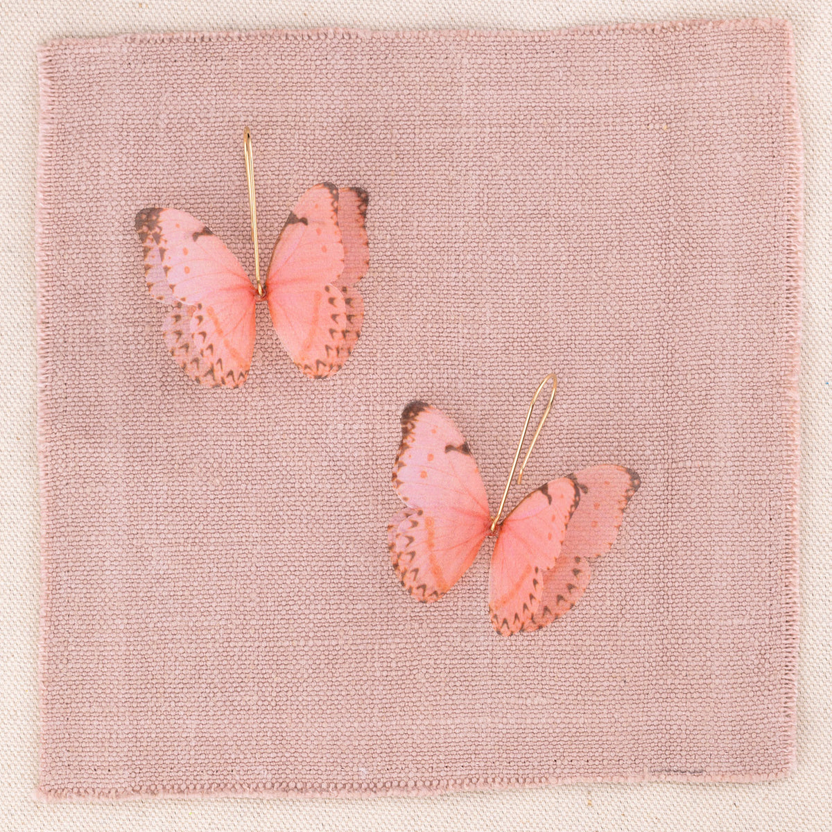 These Pink Silk Butterfly Dangle Drop Earrings Gold Earwires by Oanasavu.creations are a delicate and ethereal accessory. Handcrafted with pure silk butterflies printed in-house, they have a soft, translucent glow. The 14K gold-filled earwires are hand-shaped into an elegant silhouette that lets the butterflies be the centerpiece. These earrings are extremely light and designed to move gently with you, adding a touch of whimsy and magic to every moment.