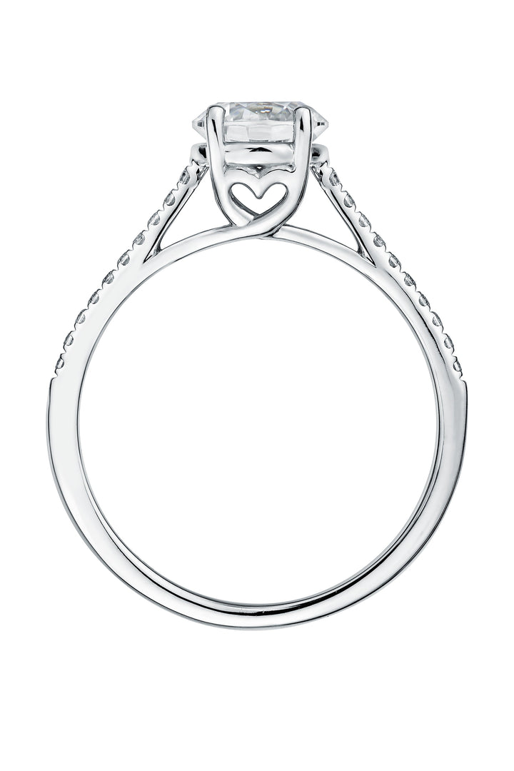 Our 1ct lab grown diamond Margot ring is superbly crafted in 9 carat white gold and exudes romance with our unique heart setting. Featuring a brilliant lab grown diamond centre and pavé set diamond shoulders, this gorgeous piece is the perfect choice for a sparkling proposal.