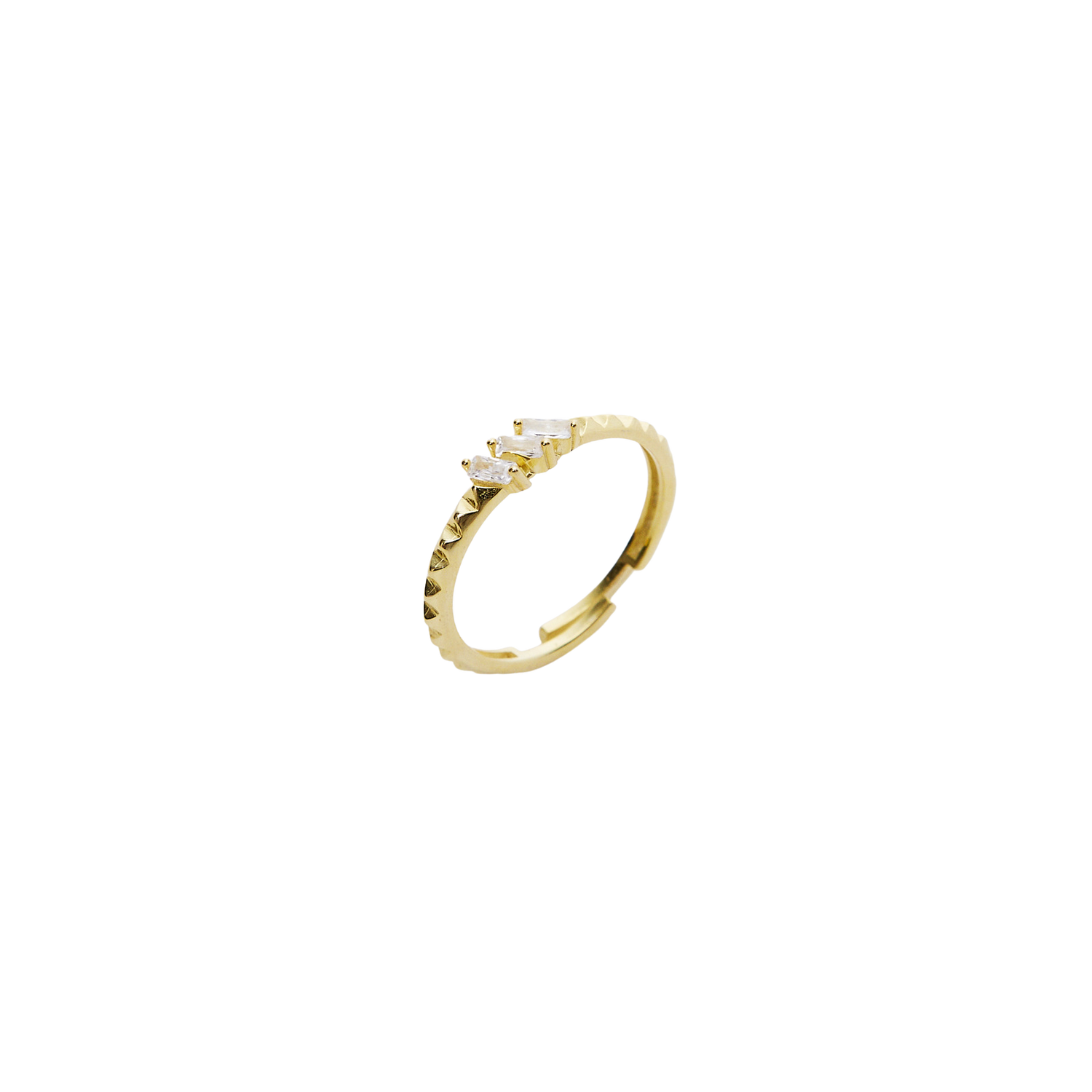 Let’s upgrade your everyday style with this Three Baguette Stone Ring that is as unique and dazzling as you. Cast in a 925 recycled sterling silver metal, it beautifully showcases three-baguette cut crystal and the ring band embellished with minimal gleaming stones that dazzle you wherever you go. This trendy ring is highly adjustable that sits perfectly on your sleek and slender fingers, giving a charismatic look. It comes in luxe gold and silver tones- choose your favorite one to complement your day-to-day style. Match it with your geometric jewelry pieces for a complete chic look, or wear it solo for a classic stand-alone look. Moreover, this ring is perfect to go pretty well with casual, formal, cocktail, holiday, and office wear.