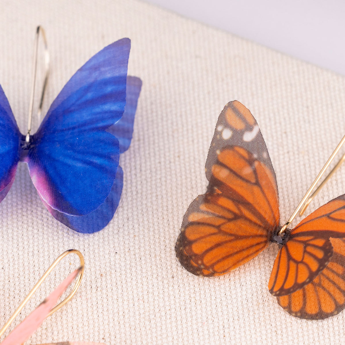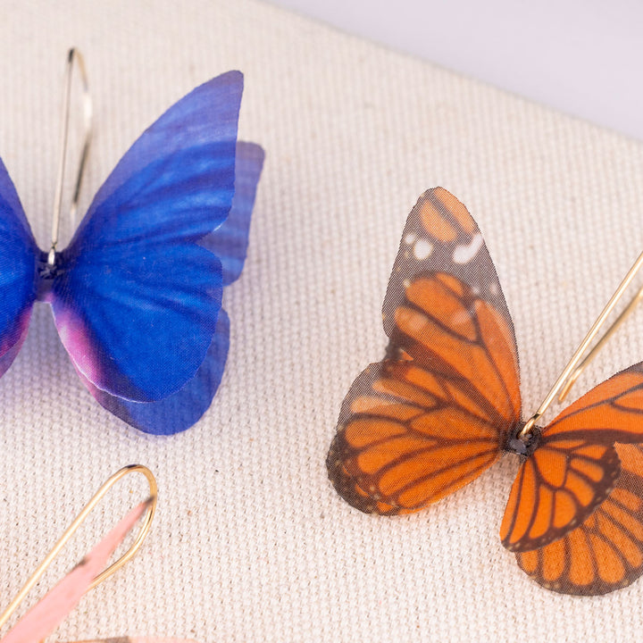 Silk Butterfly Gold Wire Dangle Earrings Fairy Wings