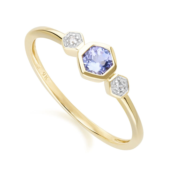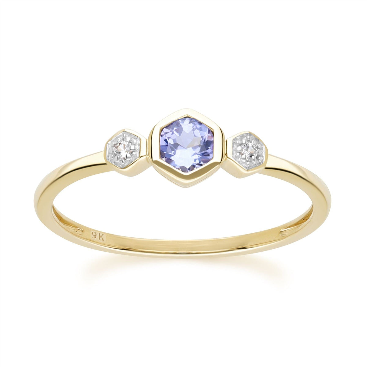 This Stunning Geometric Round Tanzanite and Sapphire Ring in 9ct Yellow Gold Tanzanite is named after the only place in the world where it is found, Tanzania. Flaunting beautiful blue and violet colours, tanzanite is a must for gem lovers and collectors. Sapphire is famed for its beauty but also practical properties of strength and resiliance. Helen of Troy, famed for her lure and charm, was said to have owned a large star sapphire that symbolised her attraction.