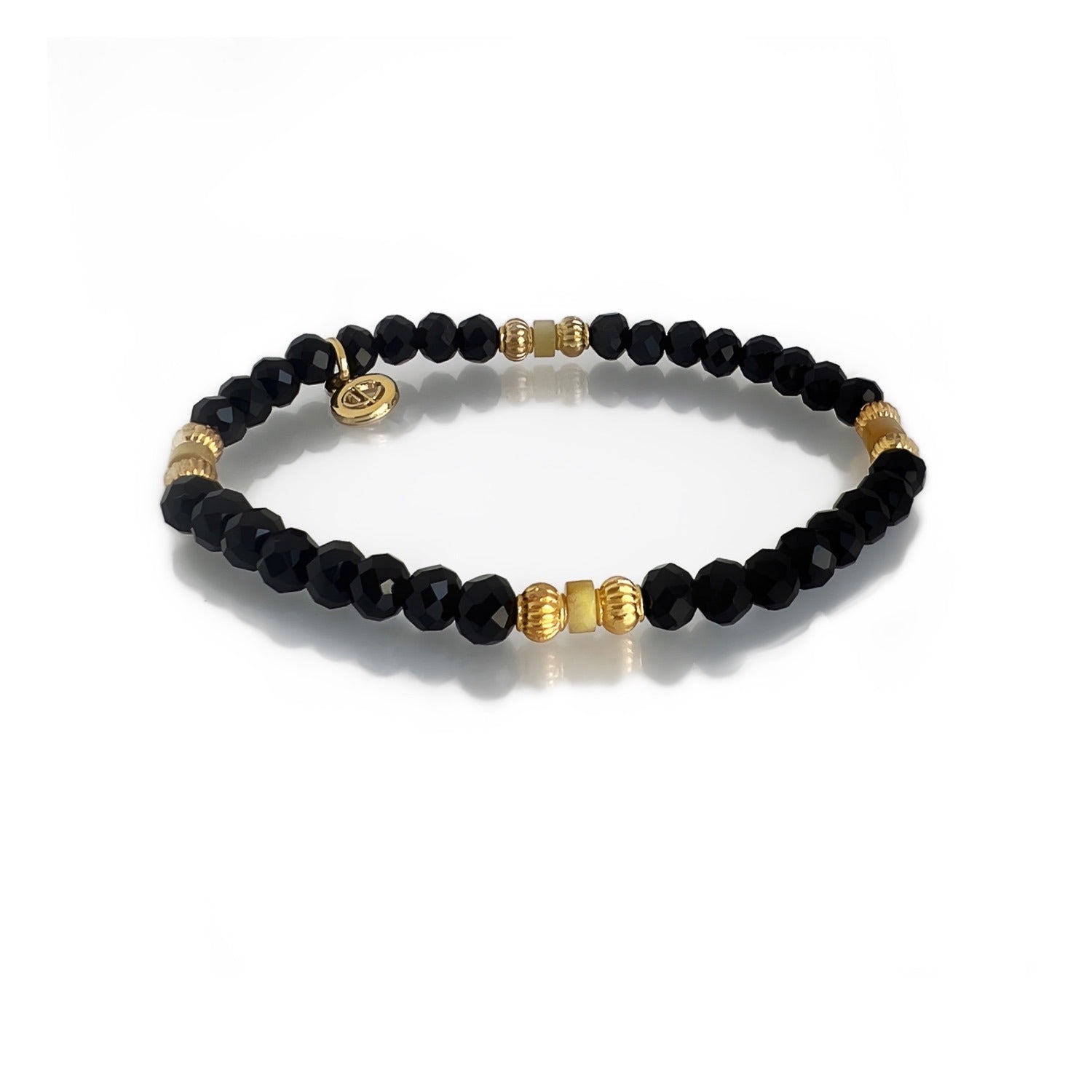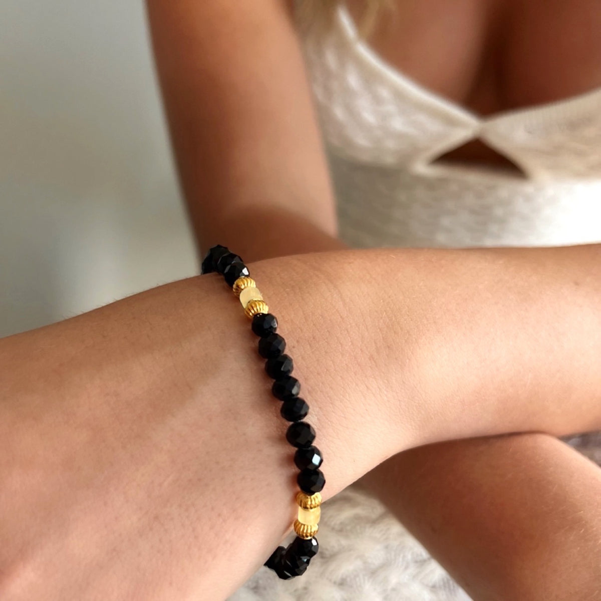 Black Onyx 6mm, Citrine 2x4mm, 18K Gold-plated beads