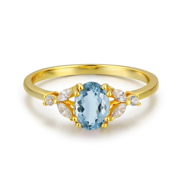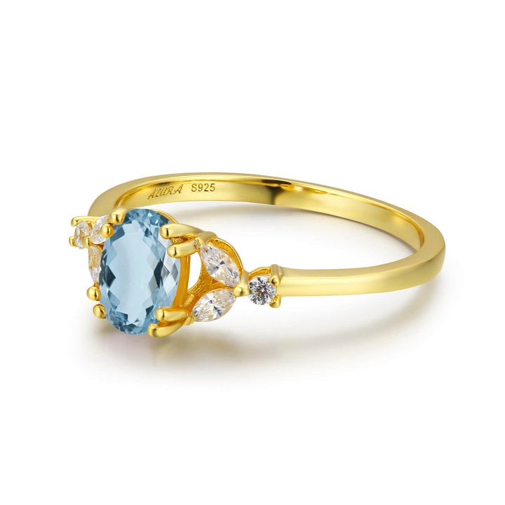 Life is a stellar opportunity to realize who you are and improve on yourself. Therefore, manifest with the Stellar Aquamarine Ring and let this gorgeous piece encourage you to constantly learn new things, try new approaches, and strive to be your true self. This ring features an oval-cut aquamarine at the center with petite white topaz cleaving towards the gemstone. A dainty piece you should have in your trinket. Made in 10K solid yellow gold.