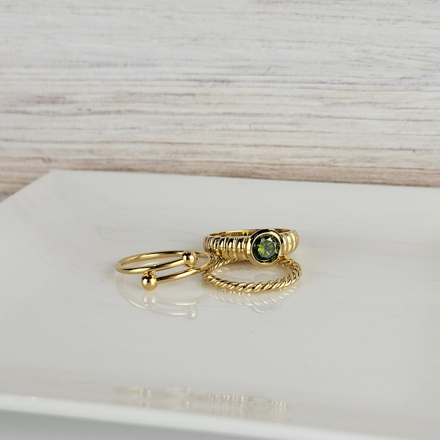 This cubic zirconia peridot round stone ring is a perfect essential for those who love stacking rings for an interesting effect. This eye-catching green stone on 14k gold plated on Sterling Silver 925 ring is a great style to pair with various rings in your collection! Here, at Lutiro, trendsetting jewelry is what we do best.