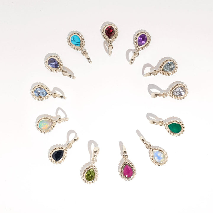 This July Birthstone Sterling Silver Necklace by Charlotte's Web Jewellery is a powerful symbol of love and vitality. Featuring a fiery, pear-shaped Ruby—the birthstone for July—set in a delicate Rawa frame, this necklace combines traditional craftsmanship with a bold, contemporary feel. Handmade in India, this piece is perfect for celebrating a personal milestone or a loved one's birth month. Its unique and heartfelt design makes it a cherished and meaningful addition to any collection.