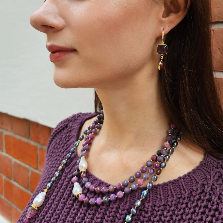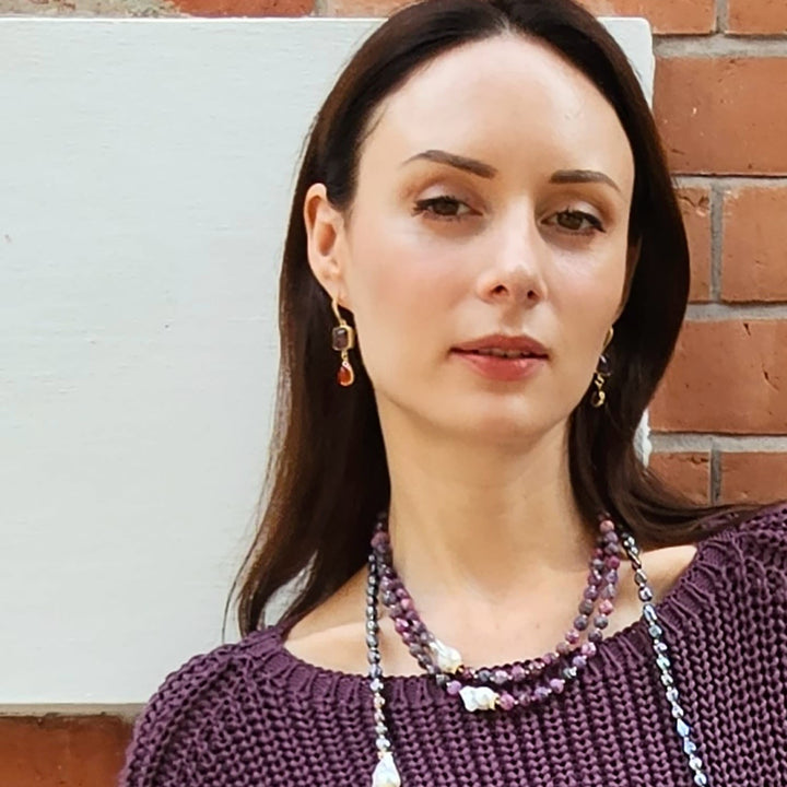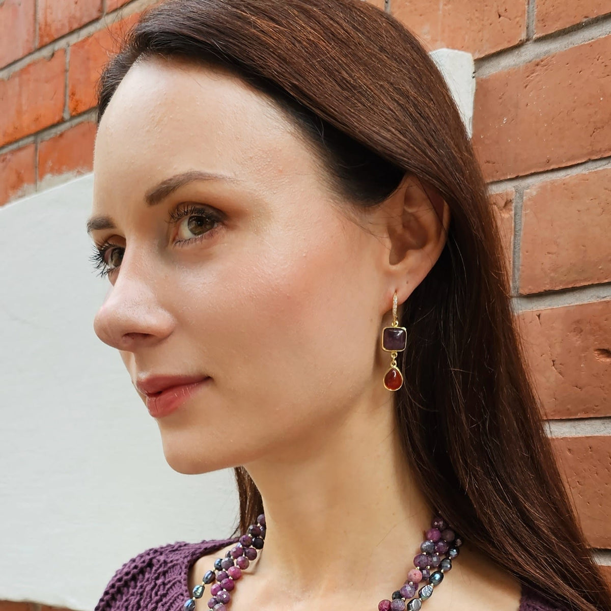 Natural Garnet With Red Agate Dangle Earrings by Farra are a striking accessory that combines a birthstone and an energy stone. These earrings feature deep red garnet, symbolizing passion and vitality, and vibrant red agate, known for its grounding properties. The elegant dangle design adds movement and sophistication, while the lightweight construction ensures comfort. They are perfect for any occasion, designed to boost your energy and enhance your style.
