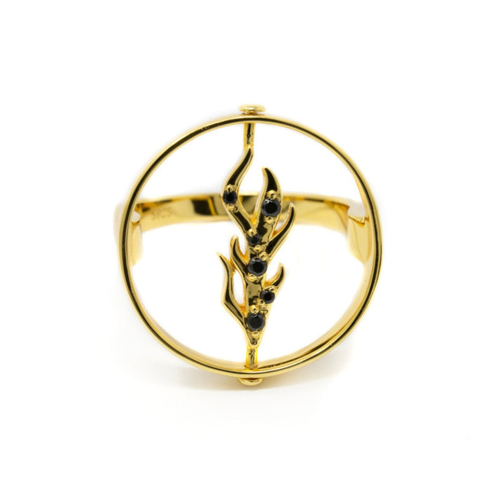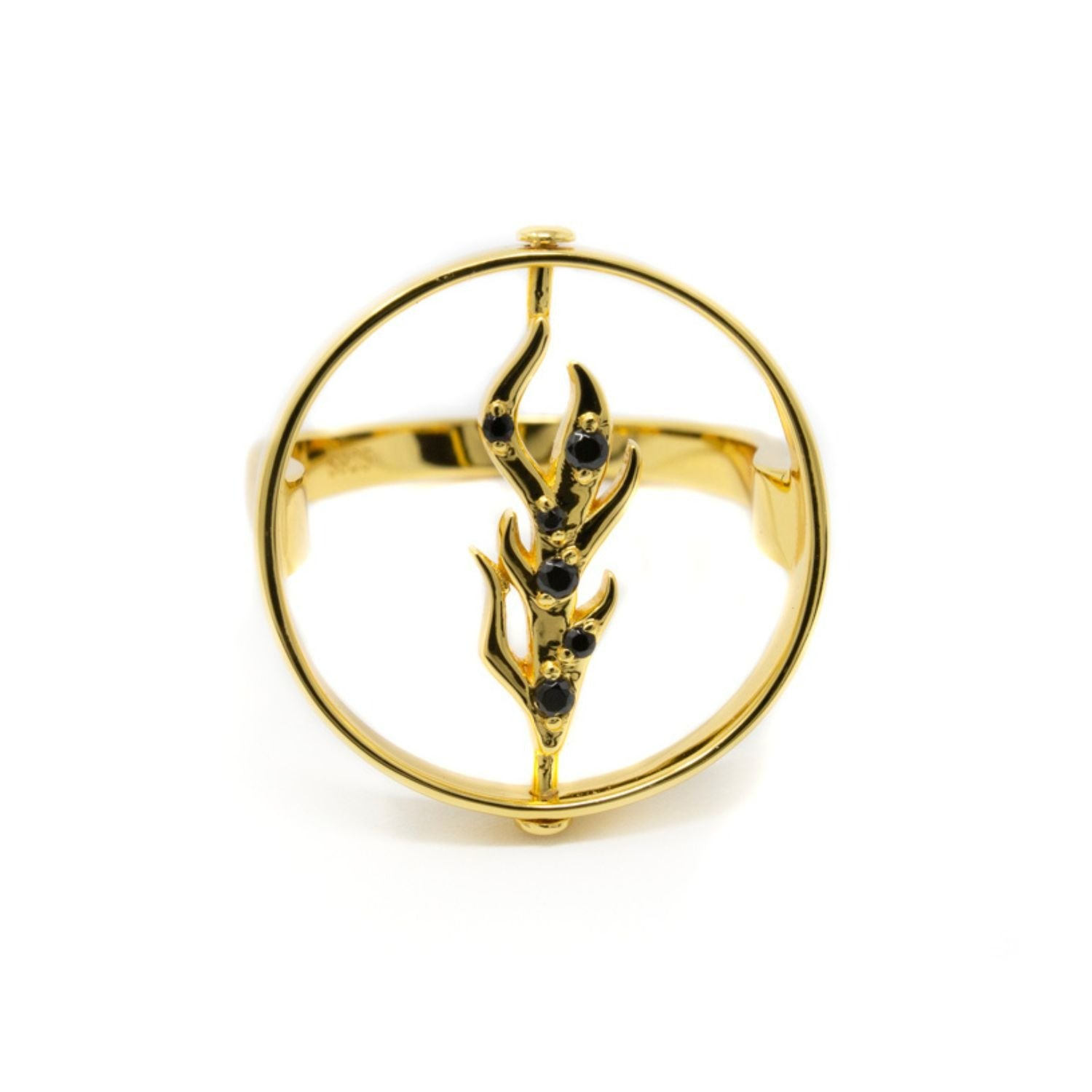 Cast in 925 Solid Silver with 18k Yellow Gold Vermeil Our Coral Ring is there to remind you to remain rooted in life, with the many branches of the roots representing the different paths we take in life. The overall structure is a reminder to maintain wisdom and happiness, whichever path we take. The Coral feature has the ability to rotate, allowing the wearer to have a choice in what side they would like to have on show. Onyx A stone of protection and strength thought to help overcome bad habits. A great stone to clear away bad karma and heal from grief. The coral spins from the stone side to the plain side, so it can be worn either way.