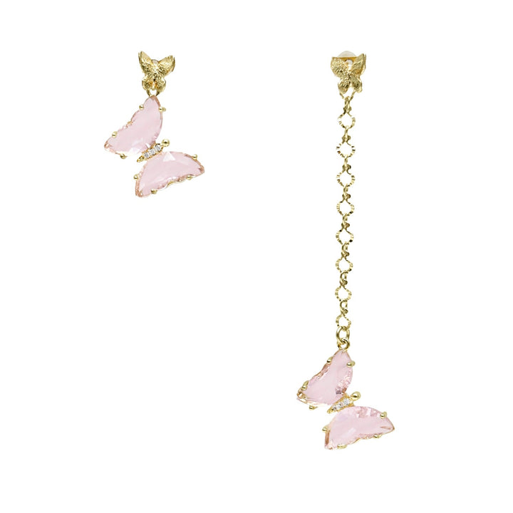 These Asymmetric Pink Crystal Butterfly Earrings by Farra are a meticulously crafted accessory that adds a touch of unique charm and playful elegance to any look. Each earring features a delicate butterfly motif, adorned with shimmering Swarovski pink crystals. The asymmetrical design creates a sense of whimsical movement, while the gentle hue of the crystals provides a dazzling display of sparkle. These earrings are the perfect accessory for adding a touch of glamour and sophistication.